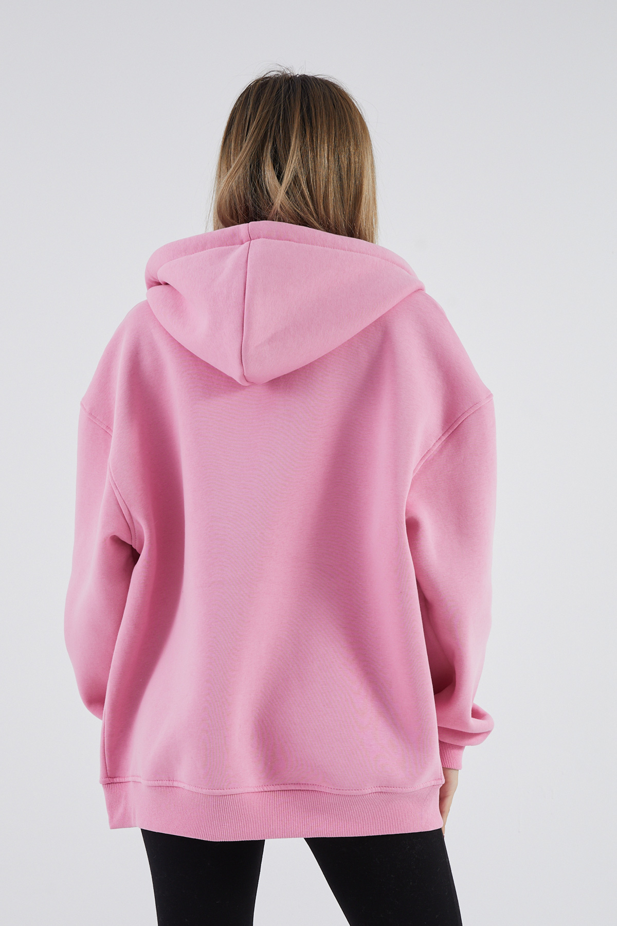 Kapüşonlu Şardonlu Oversize Sweatshirt-Pembe