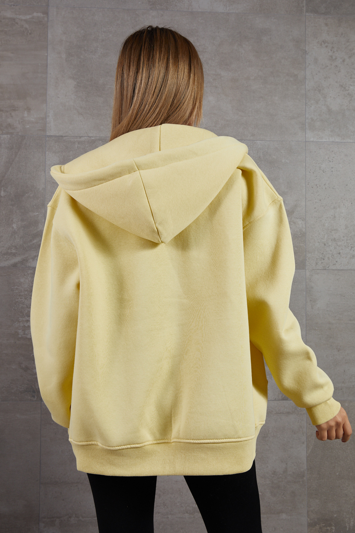 Kapüşonlu Şardonlu Oversize Sweatshirt-Sarı