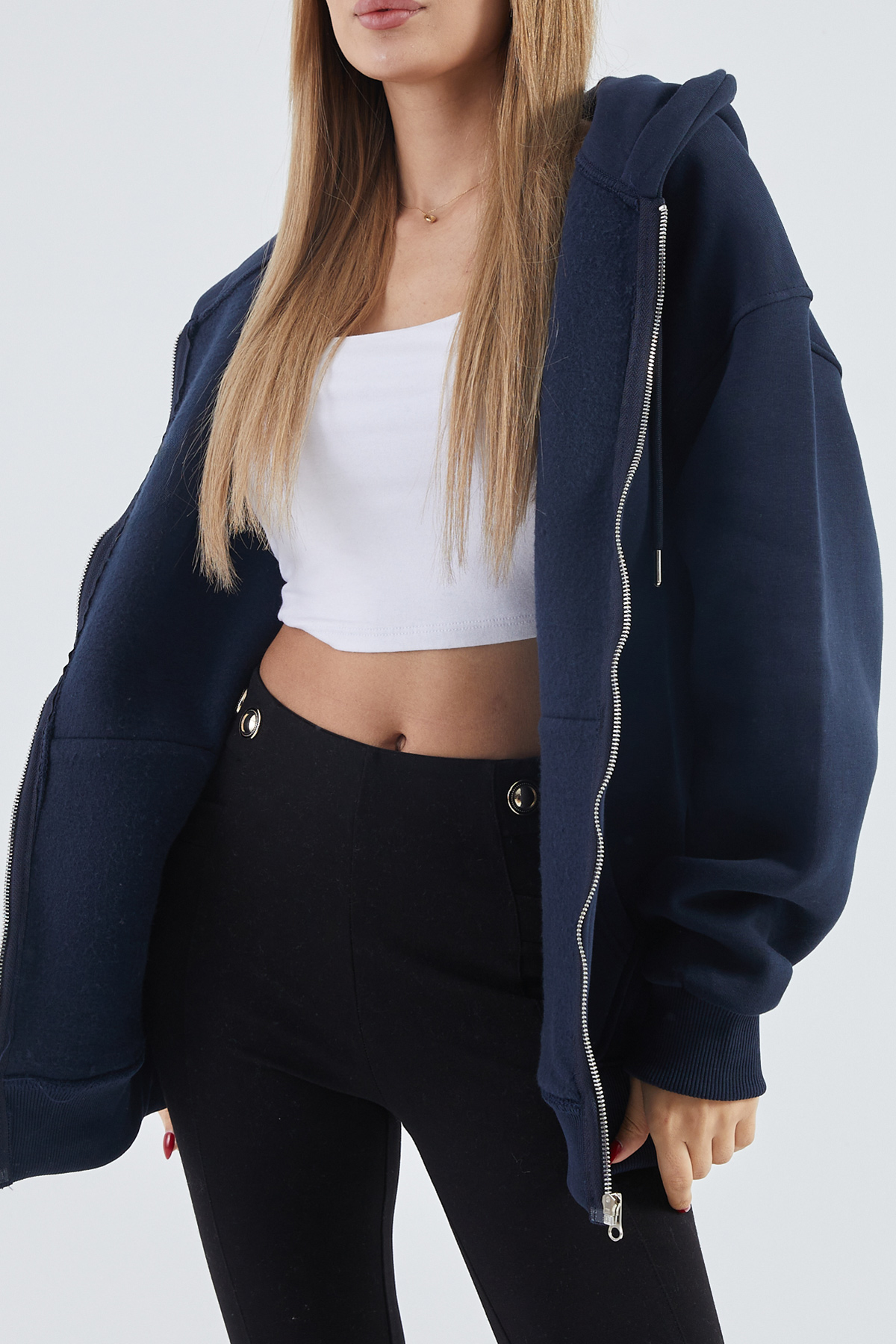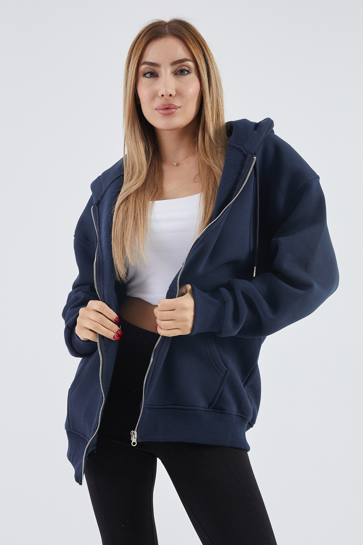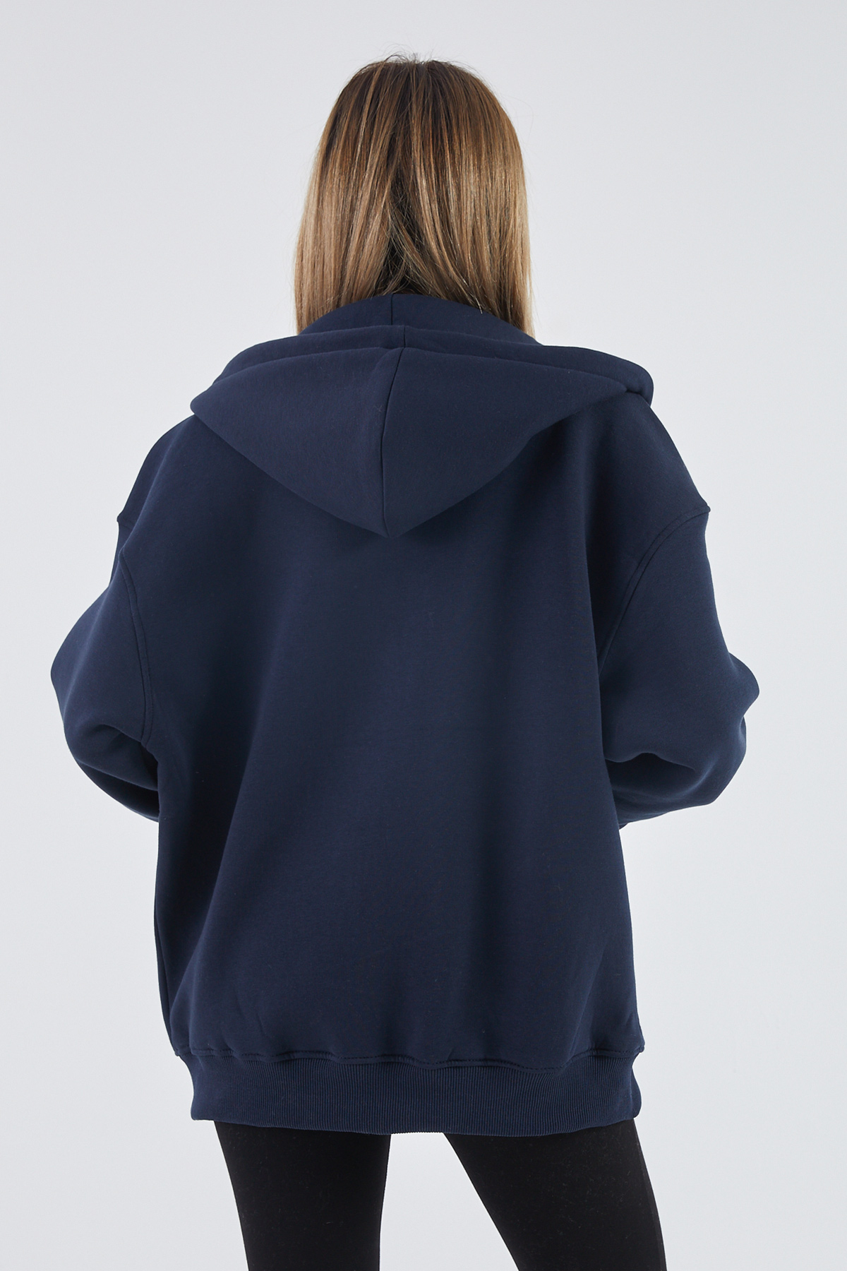 Kapüşonlu Şardonlu Oversize Sweatshirt-Lacivert