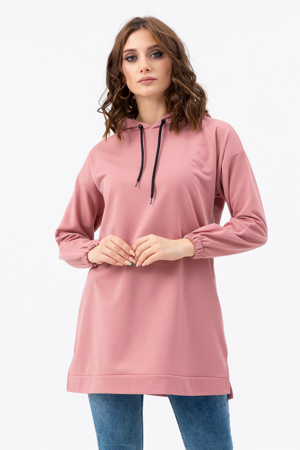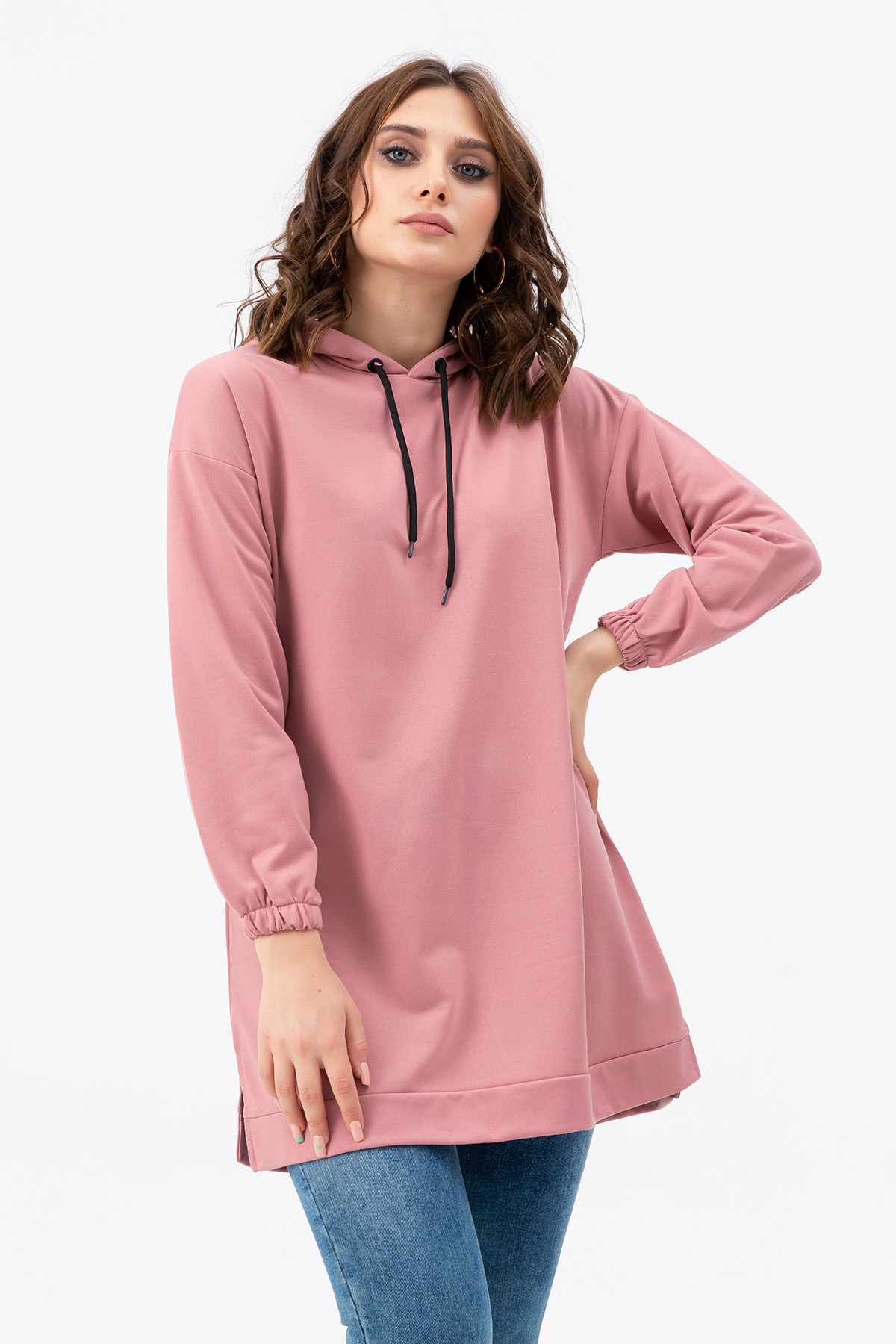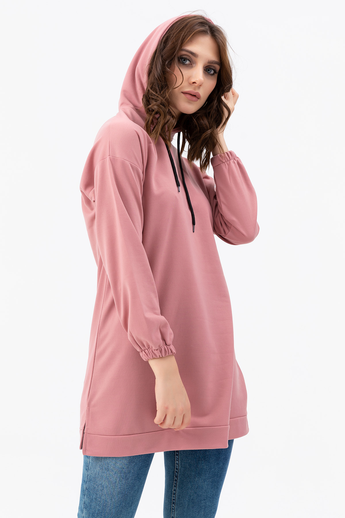 Kapüşonlu Uzun Sweat-Gül Kurusu