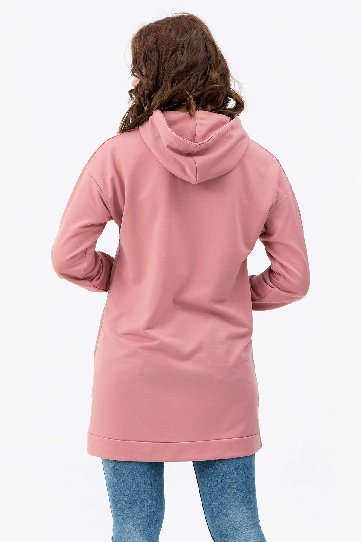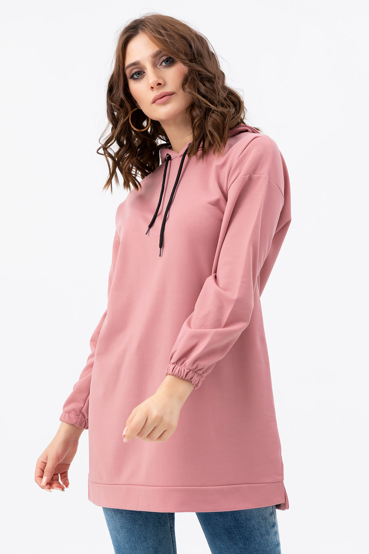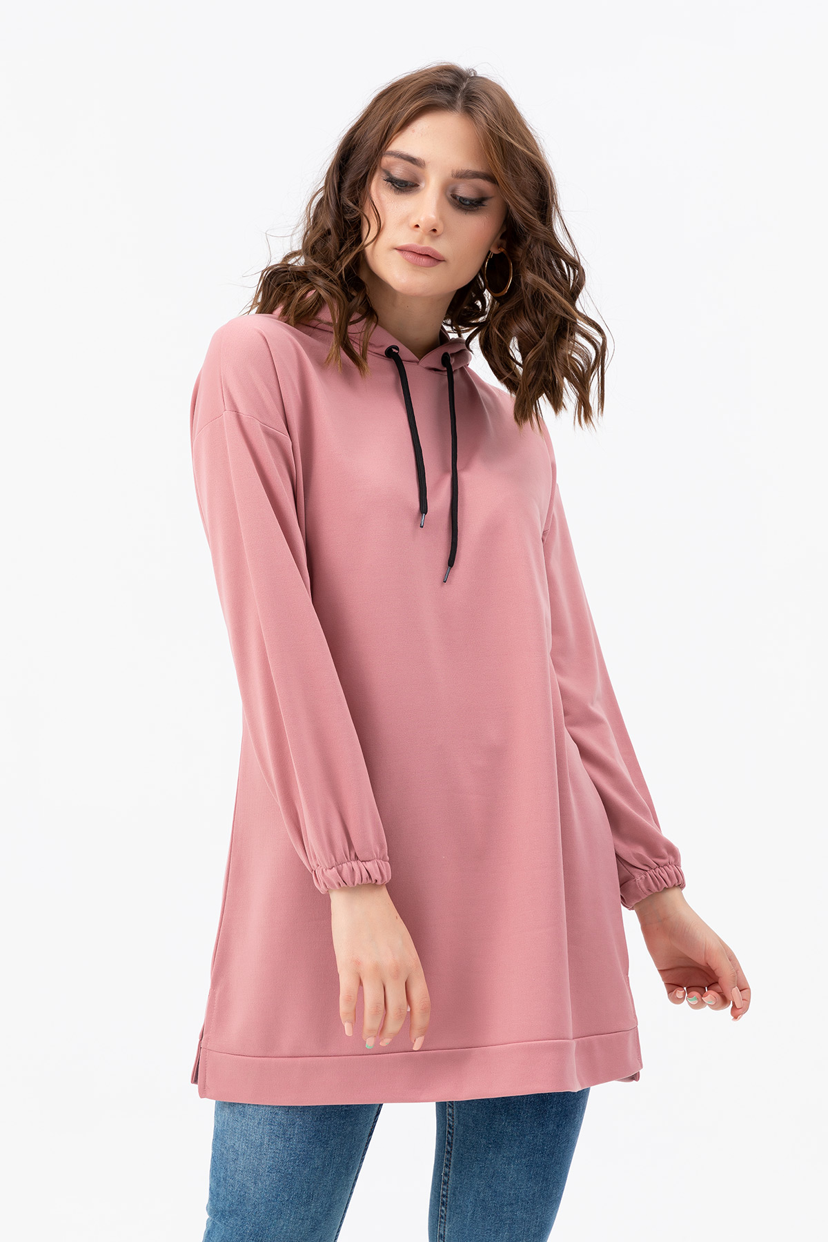 Kapüşonlu Uzun Sweat-Gül Kurusu