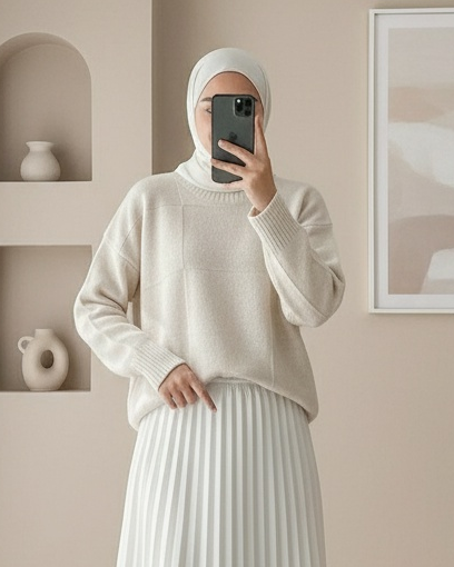 Kare Desenli Yuvarlak Yaka Yumoş Kazak -Taş-Taş