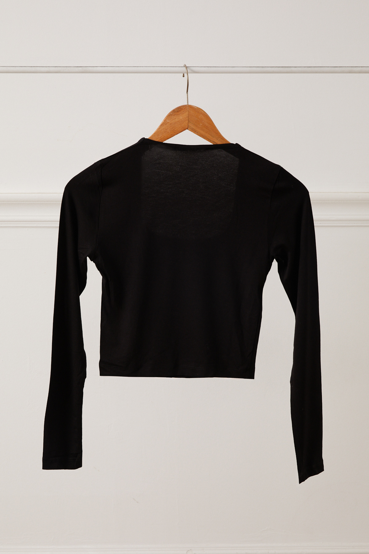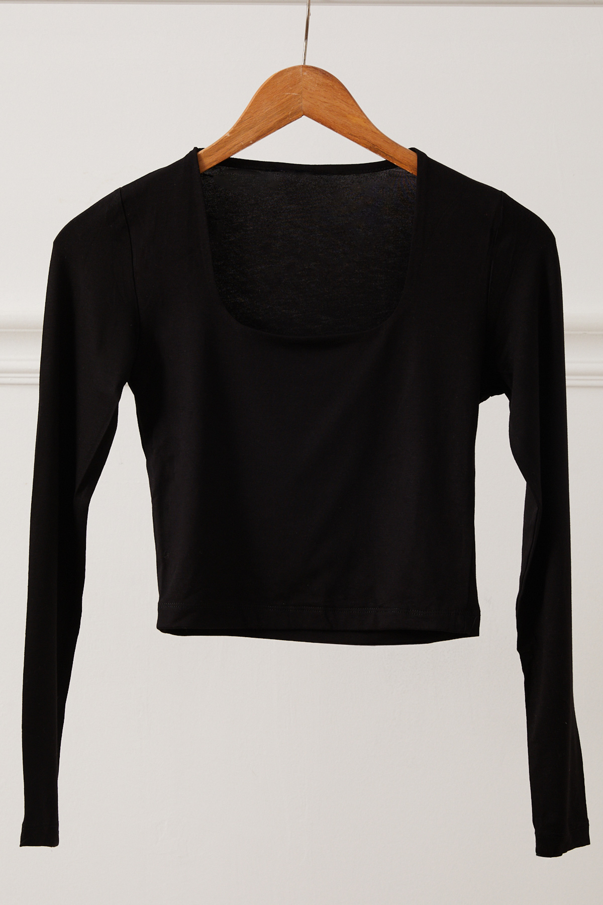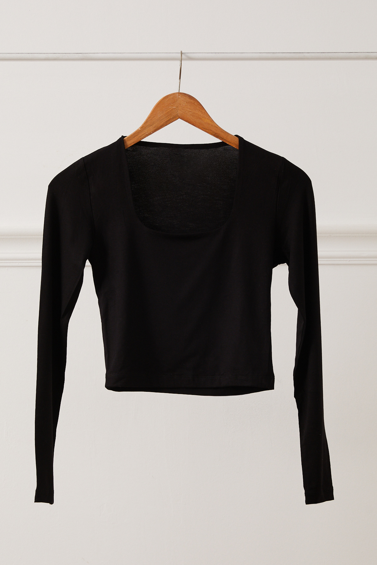 Kare Yaka Uzun Kol Basic Body-Siyah
