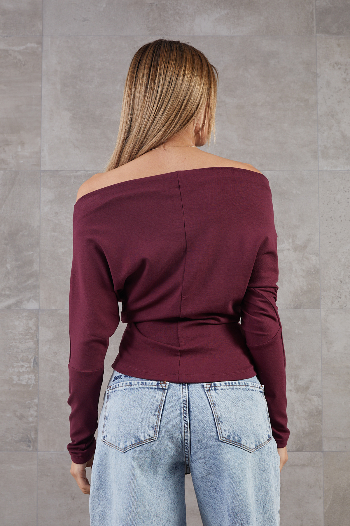 Kayık Yaka Basic Uzun Kol Bluz-Bordo