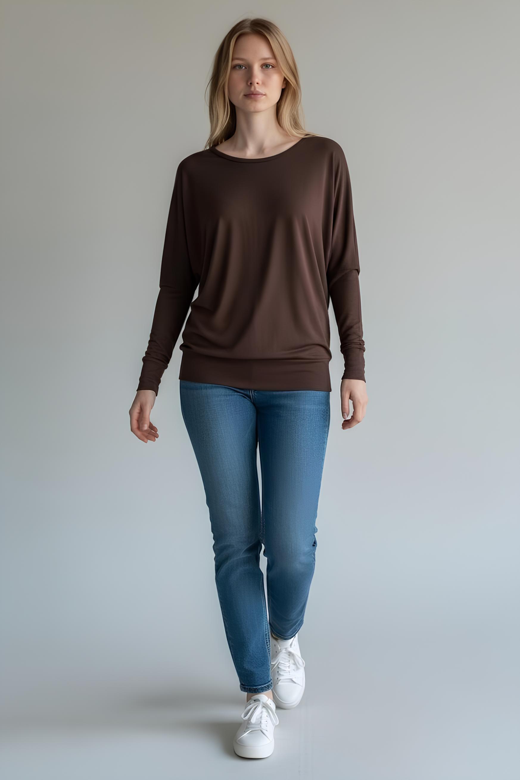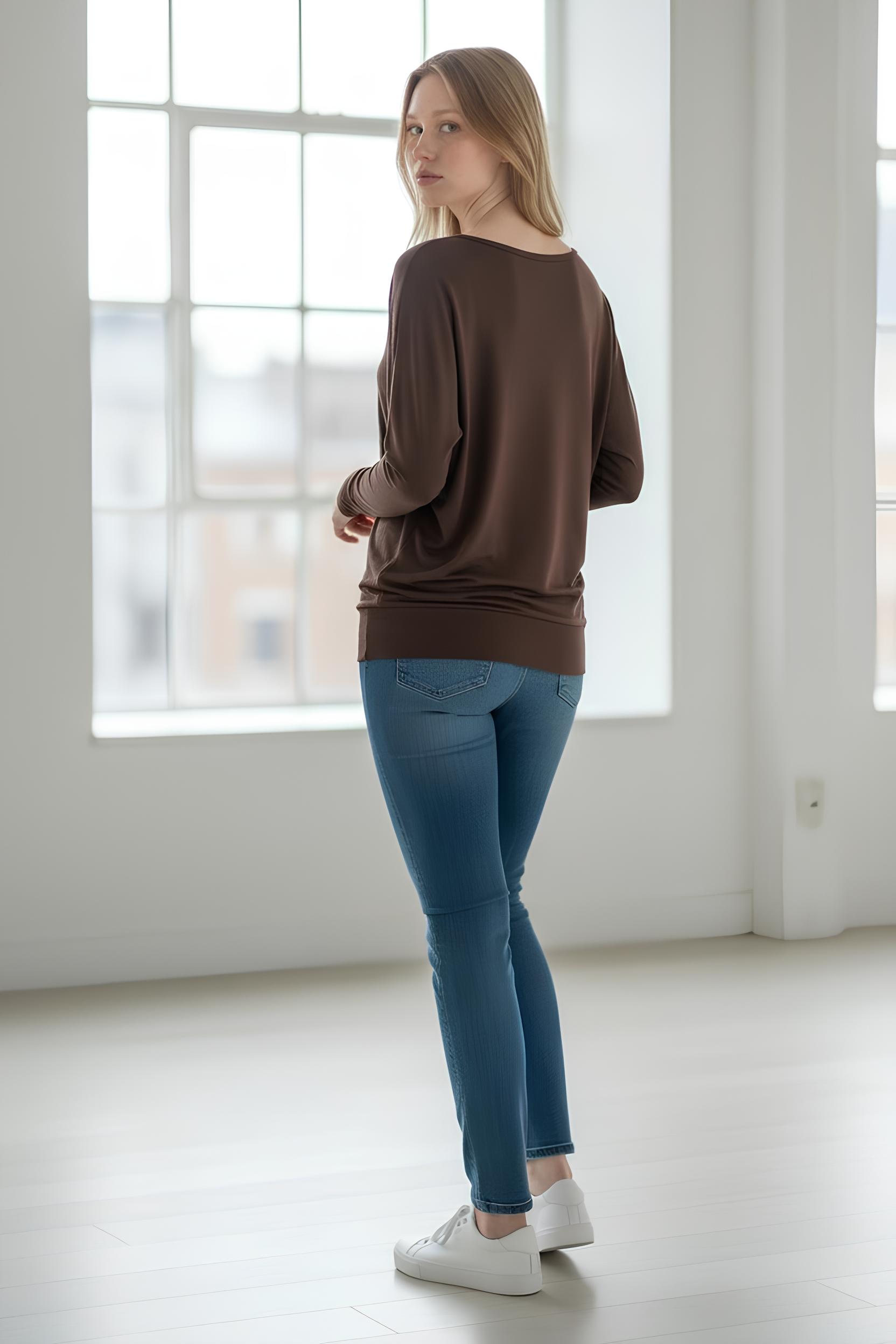 Kayık Yaka Ribanalı Yarasakol Bluz Kahve - 5162-Kahve