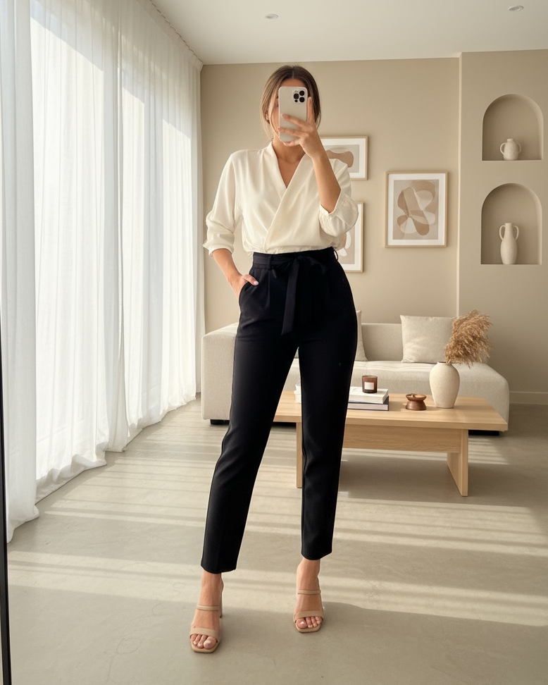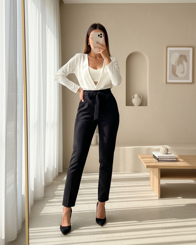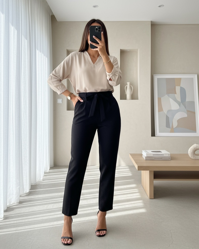 Kemerli Bilek Pantolon -Siyah-Siyah