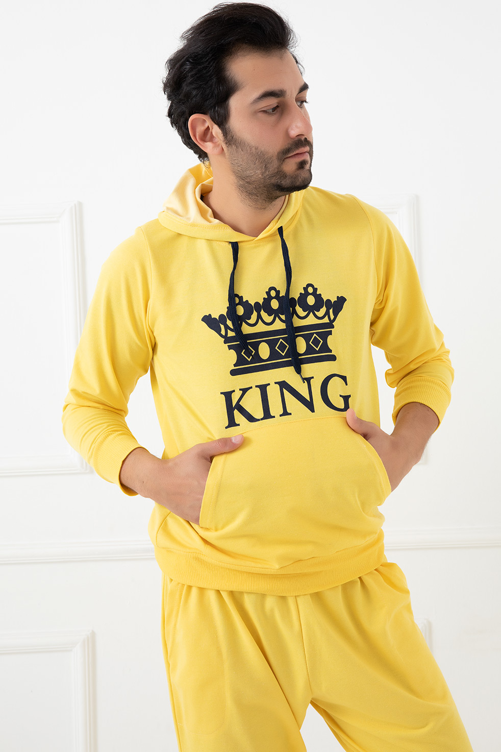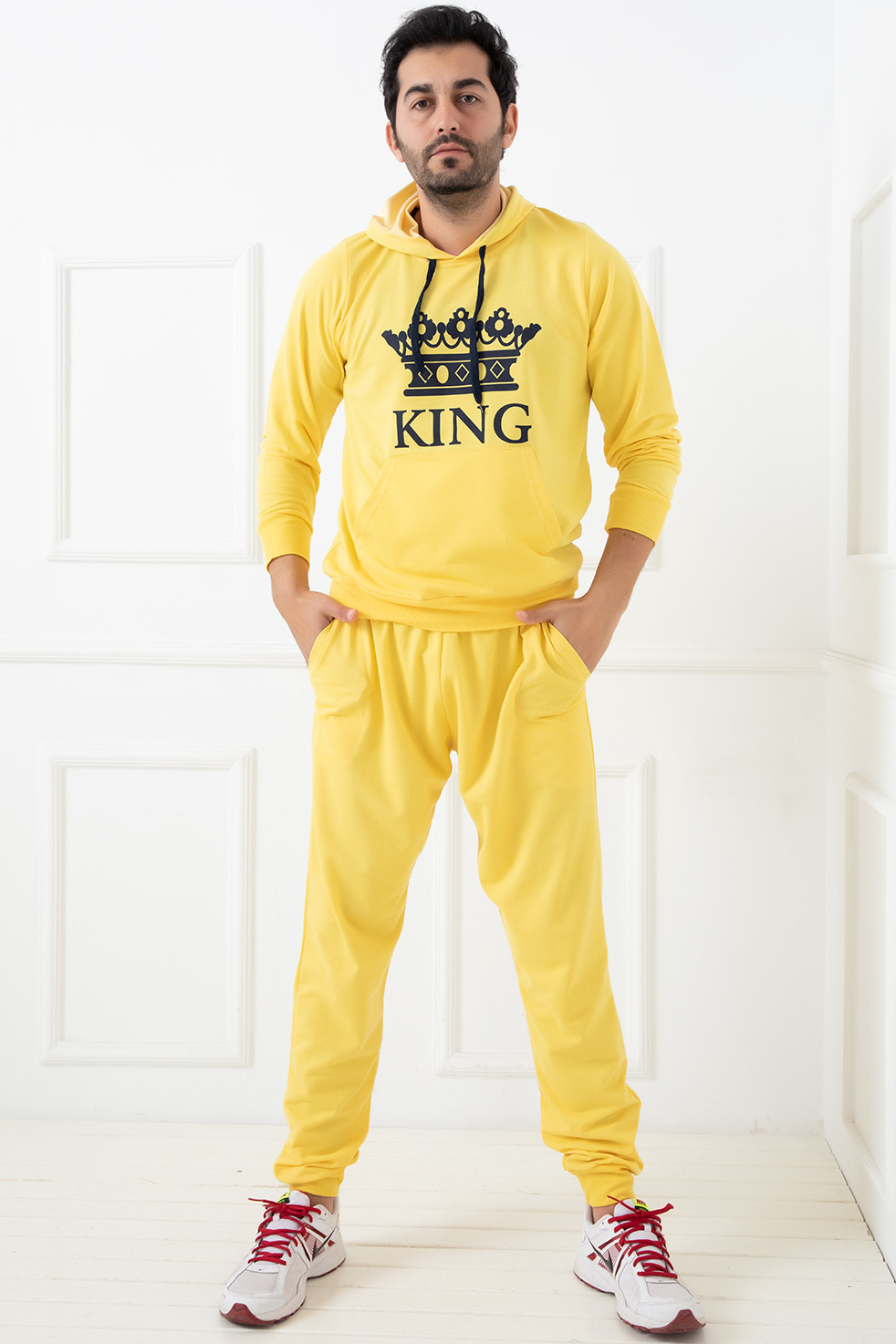 King Baskılı Erkek Eşofman Takımı-Sarı