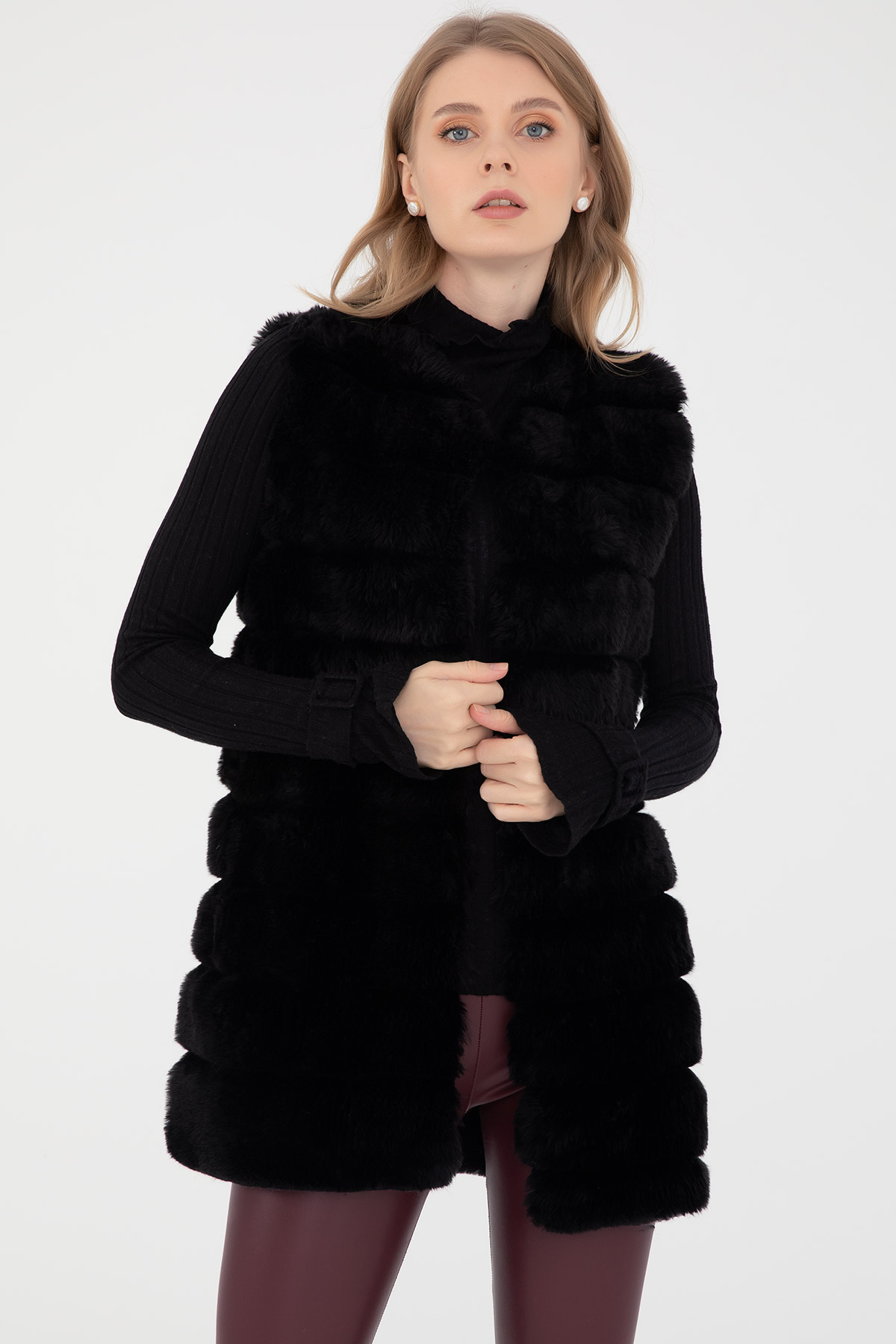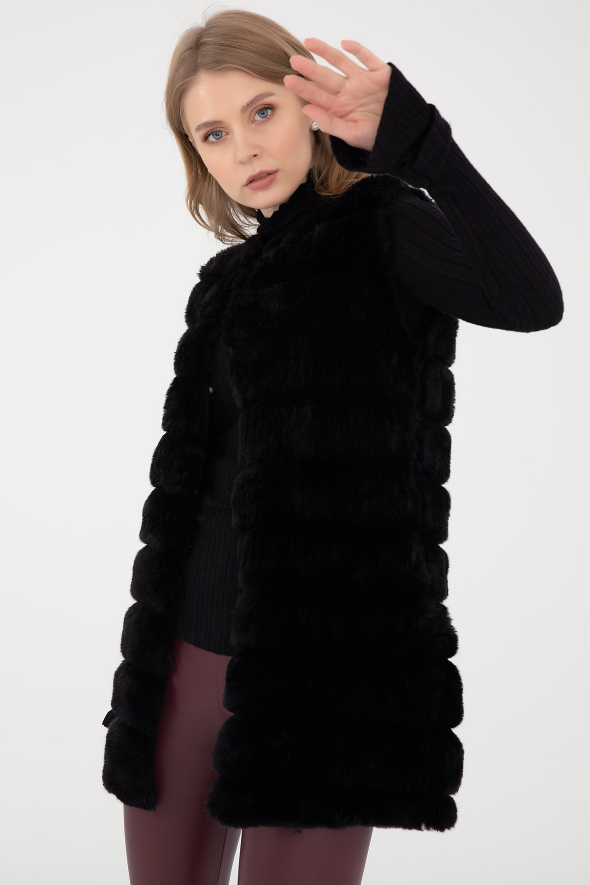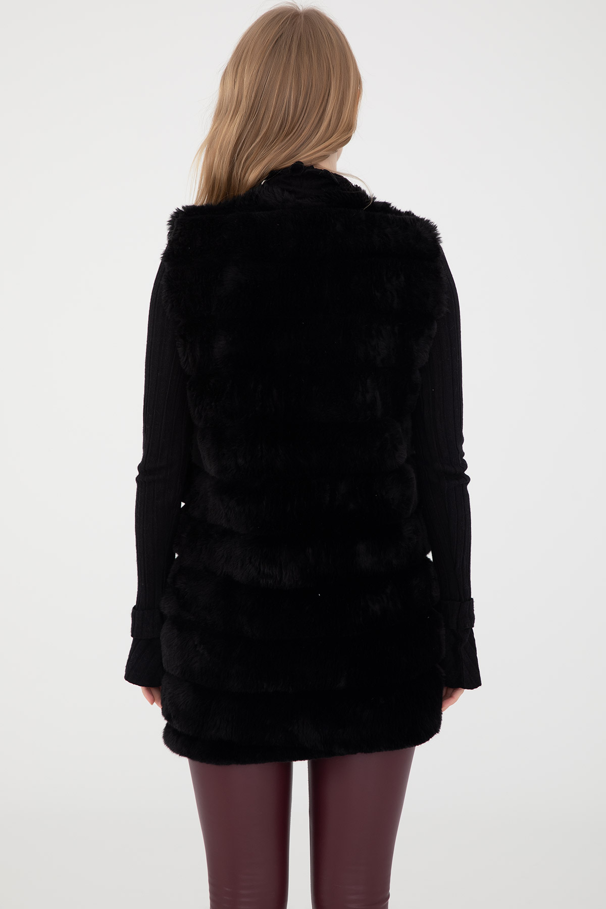 Kısa Peluş Yelek-Siyah