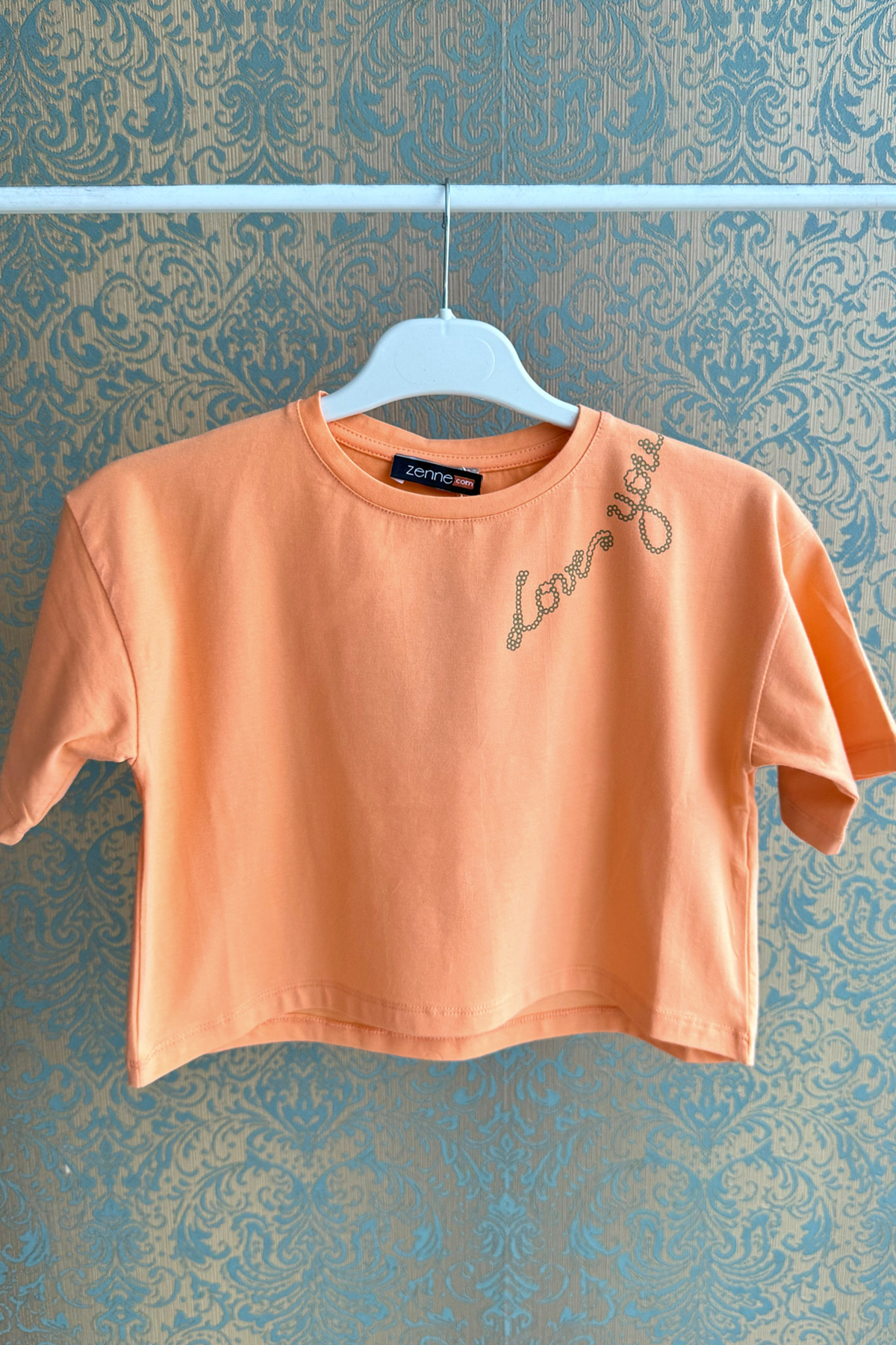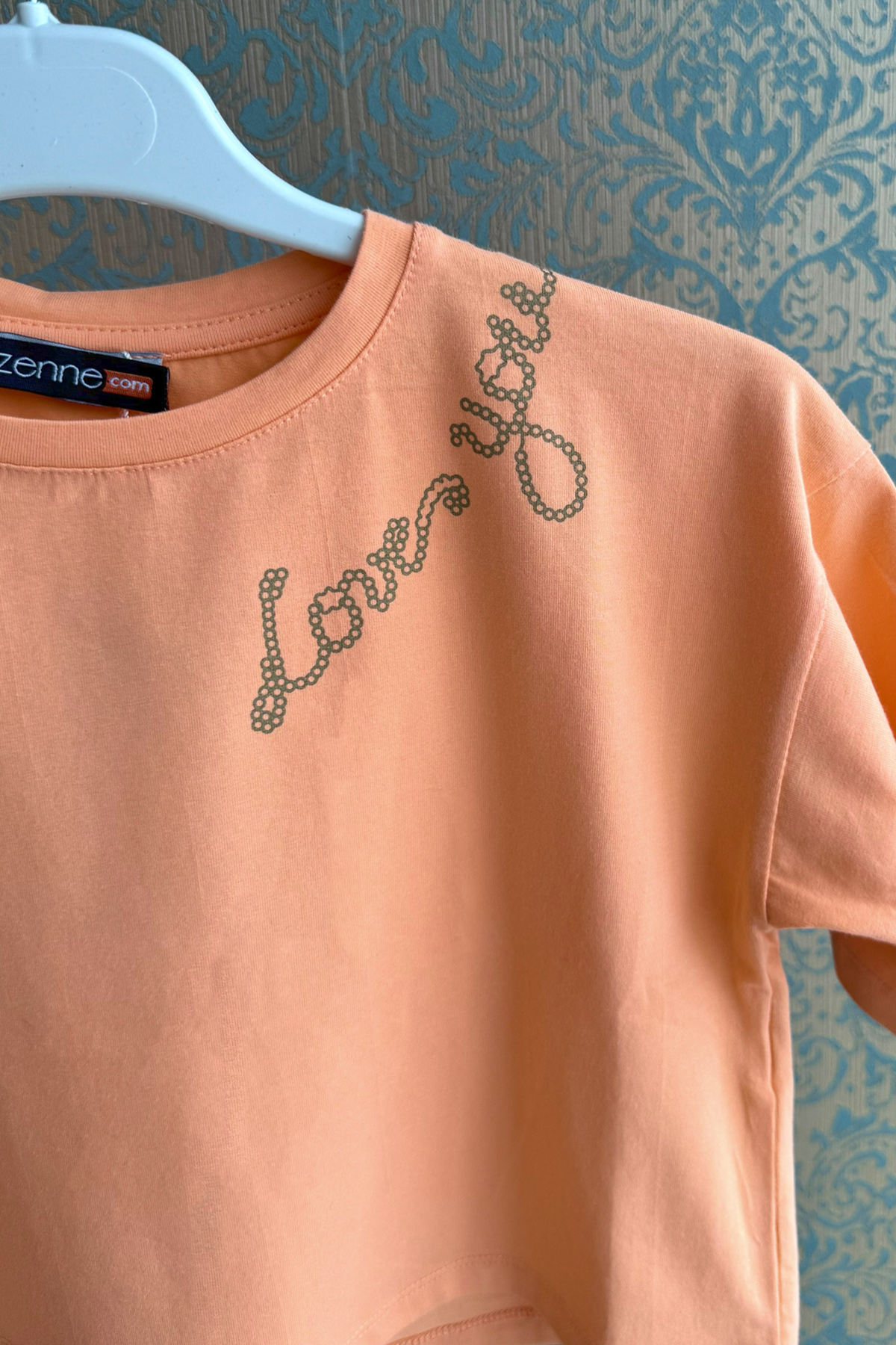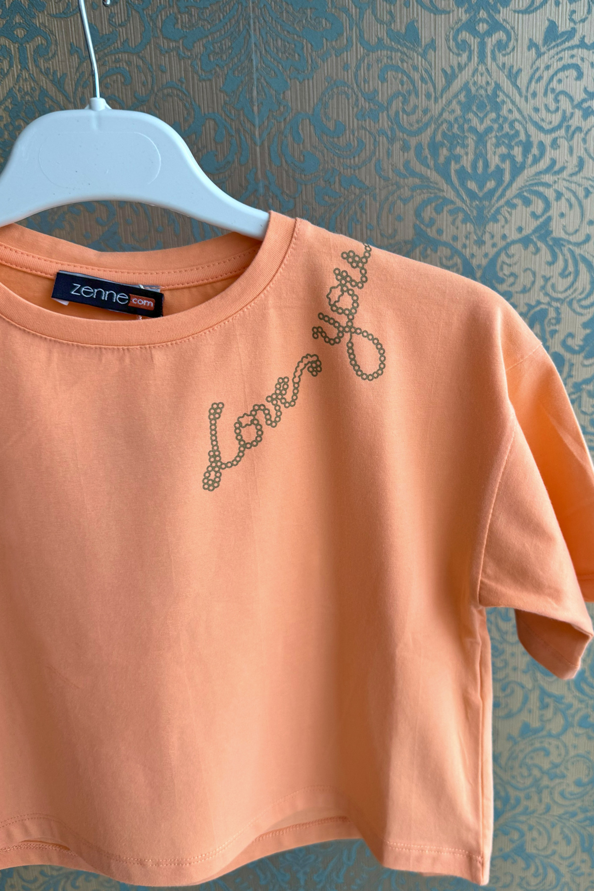 Kız Çocuk Baskılı T-shirt Somon-Somon