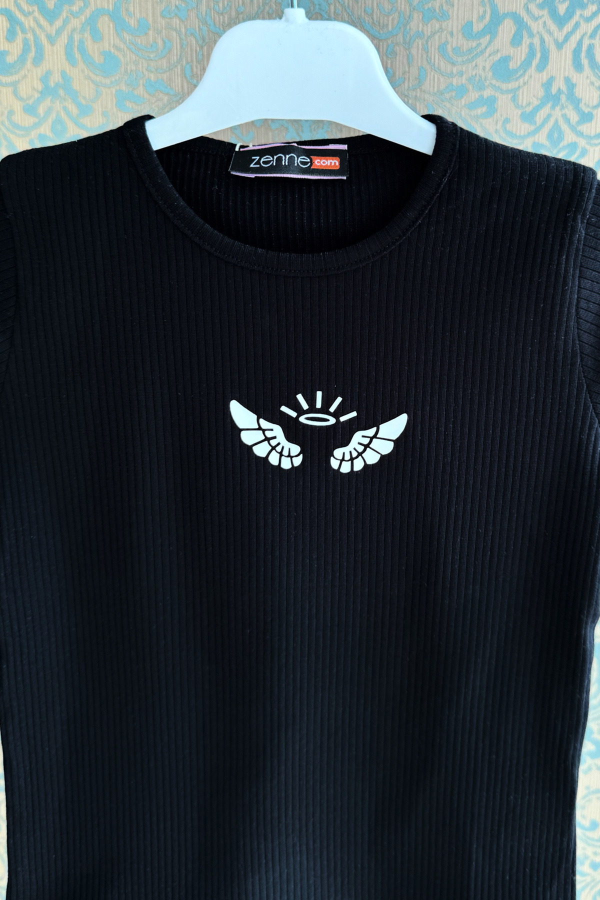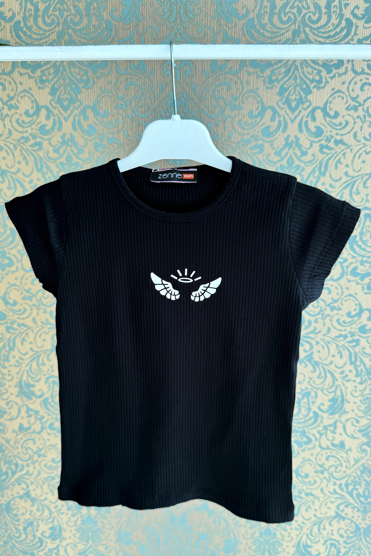 Kız Çocuk Fitilli T-shirt Siyah-Siyah