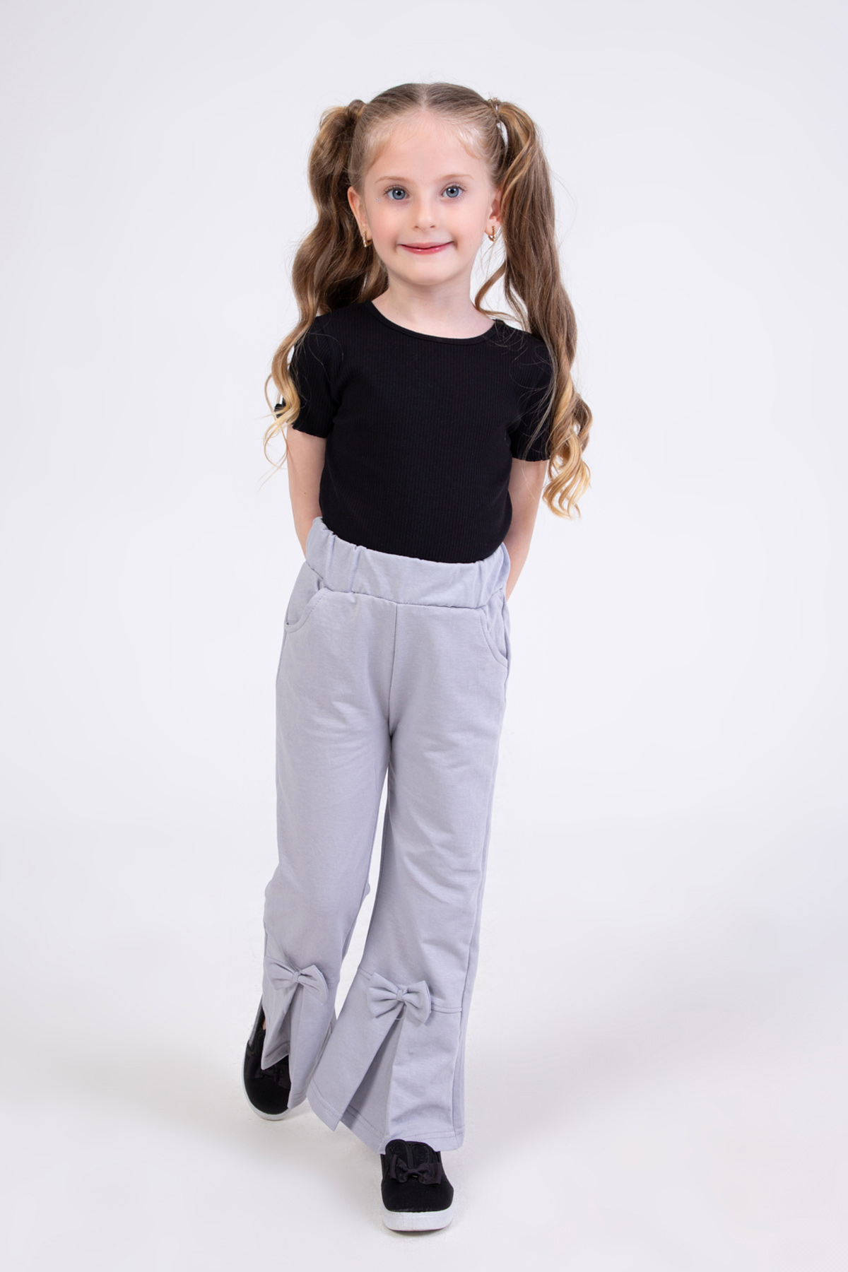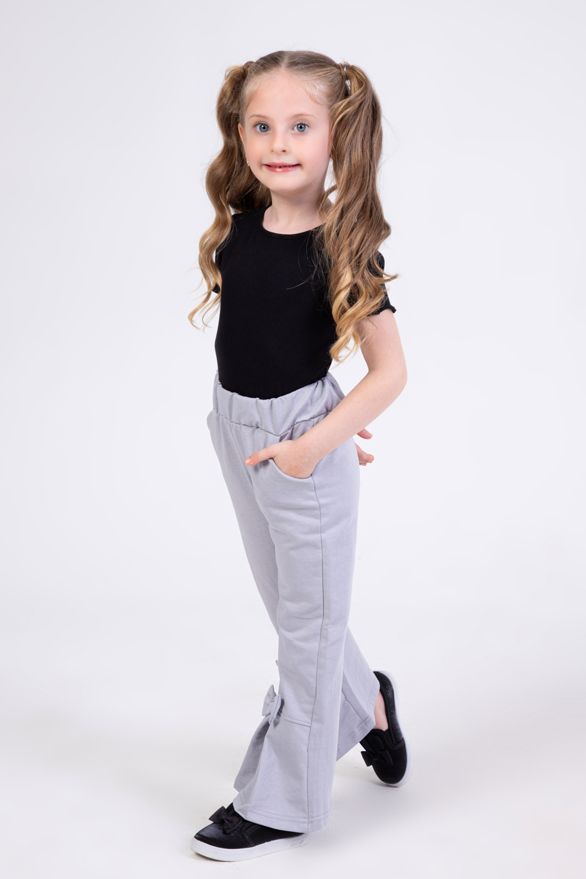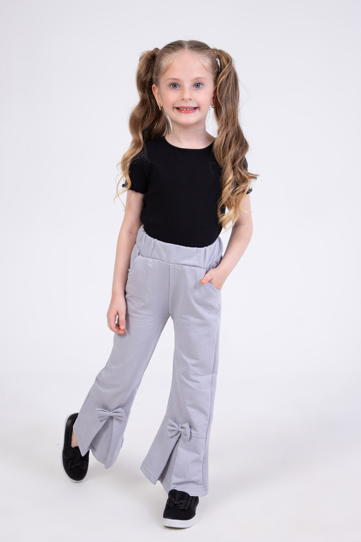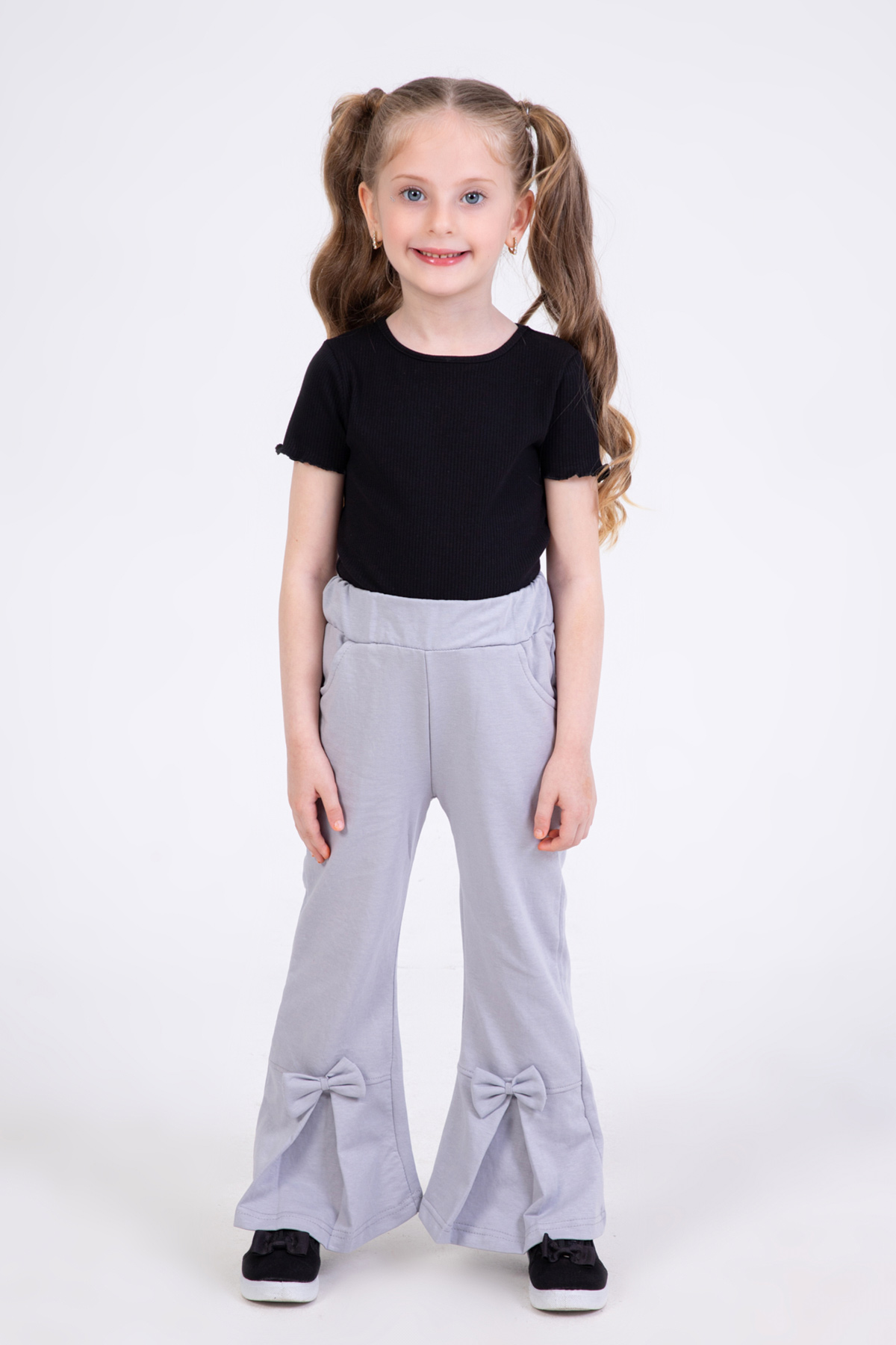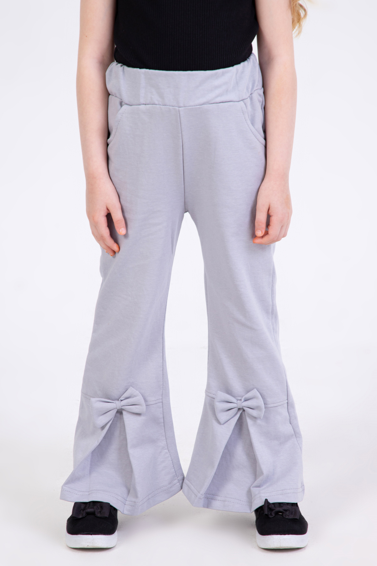 Kız Çocuk Fiyonk Detaylı Pantolon-Gri