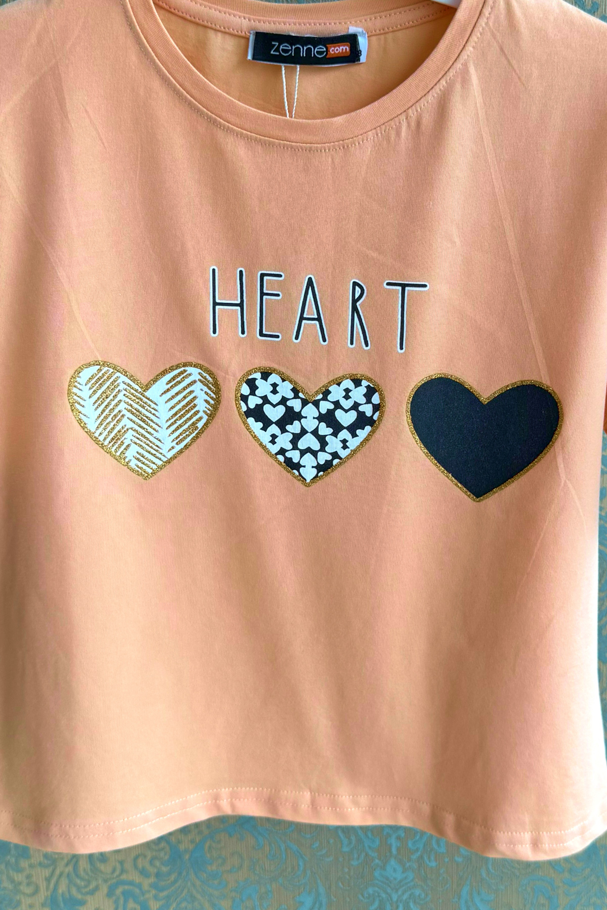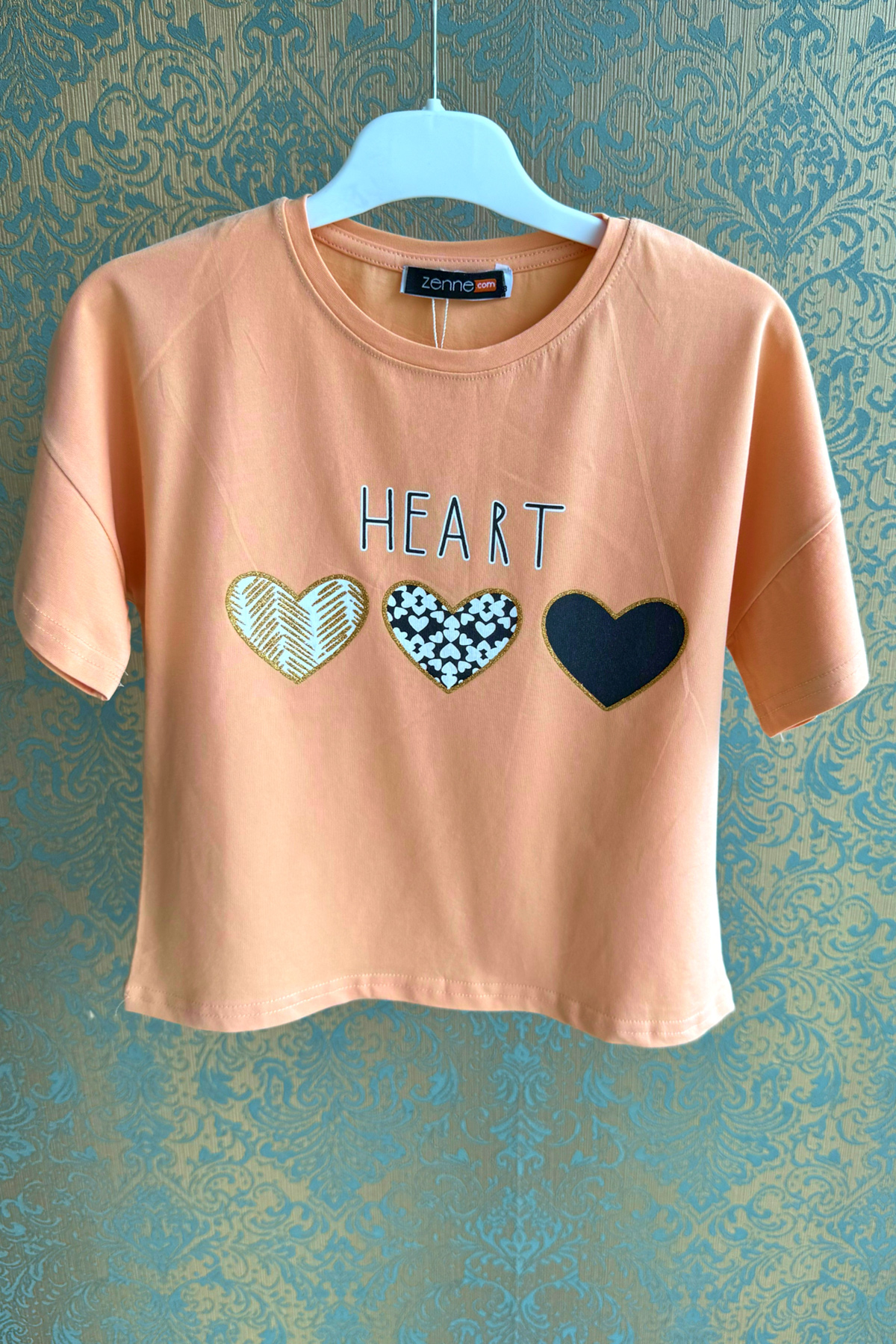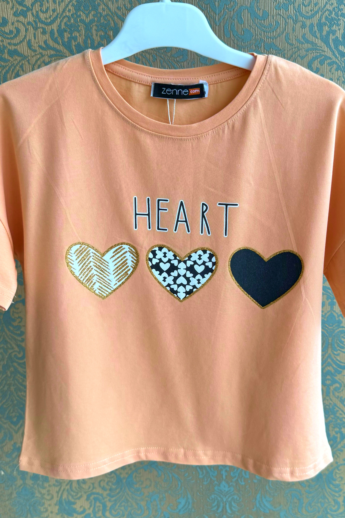 Kız Çocuk Kalp Baskılı T-shirt-Somon