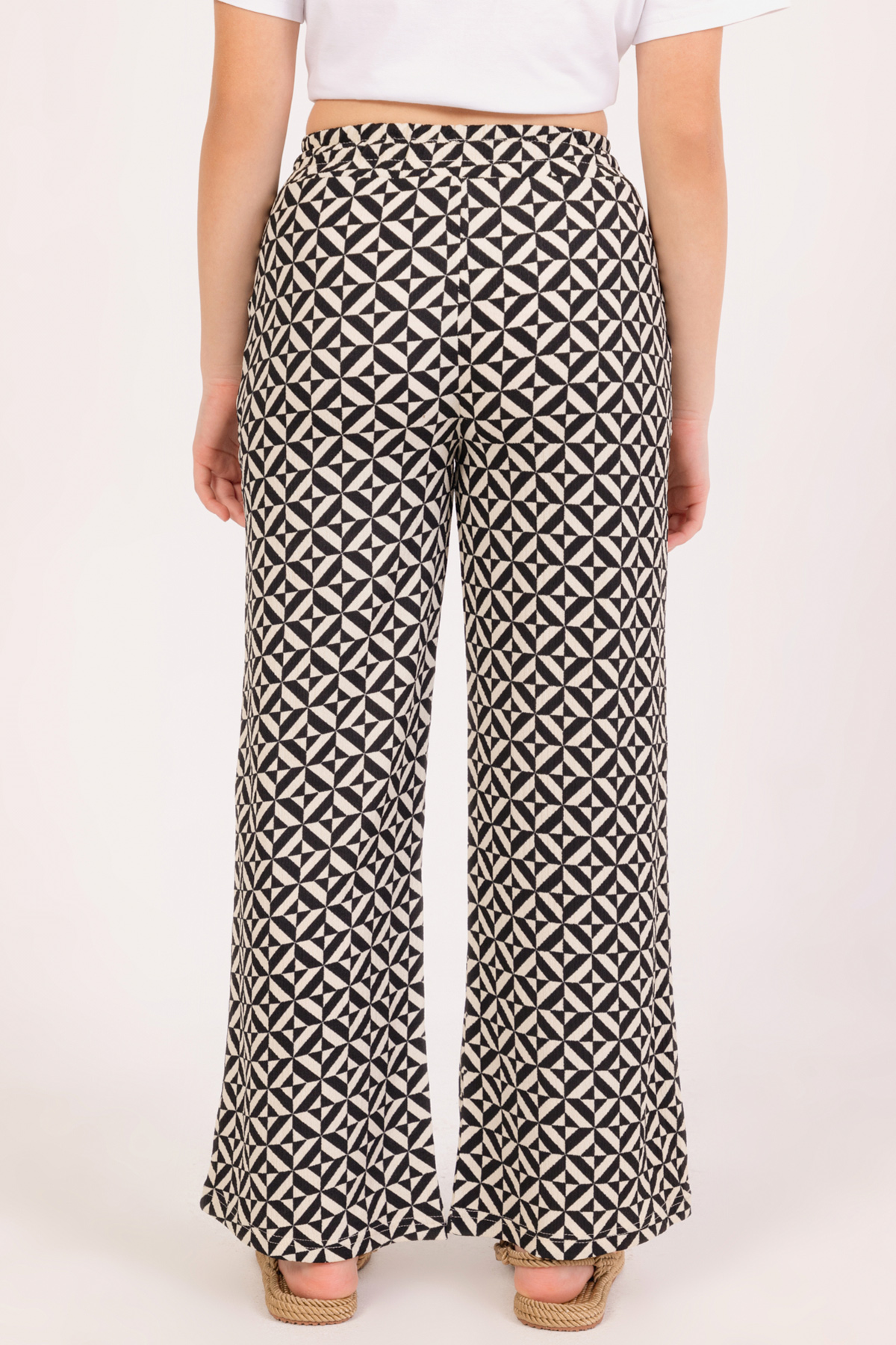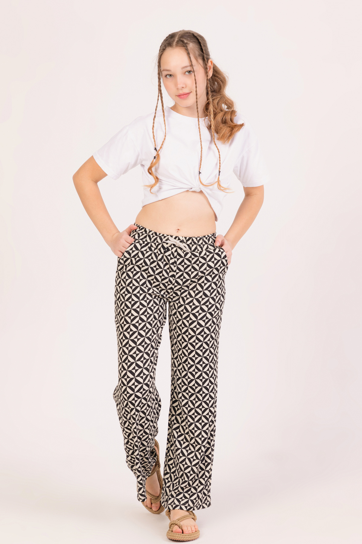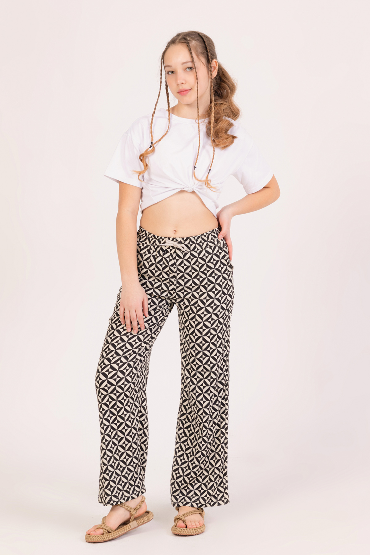 Kız Çocuk Kare Desenli Pantolon-Siyah