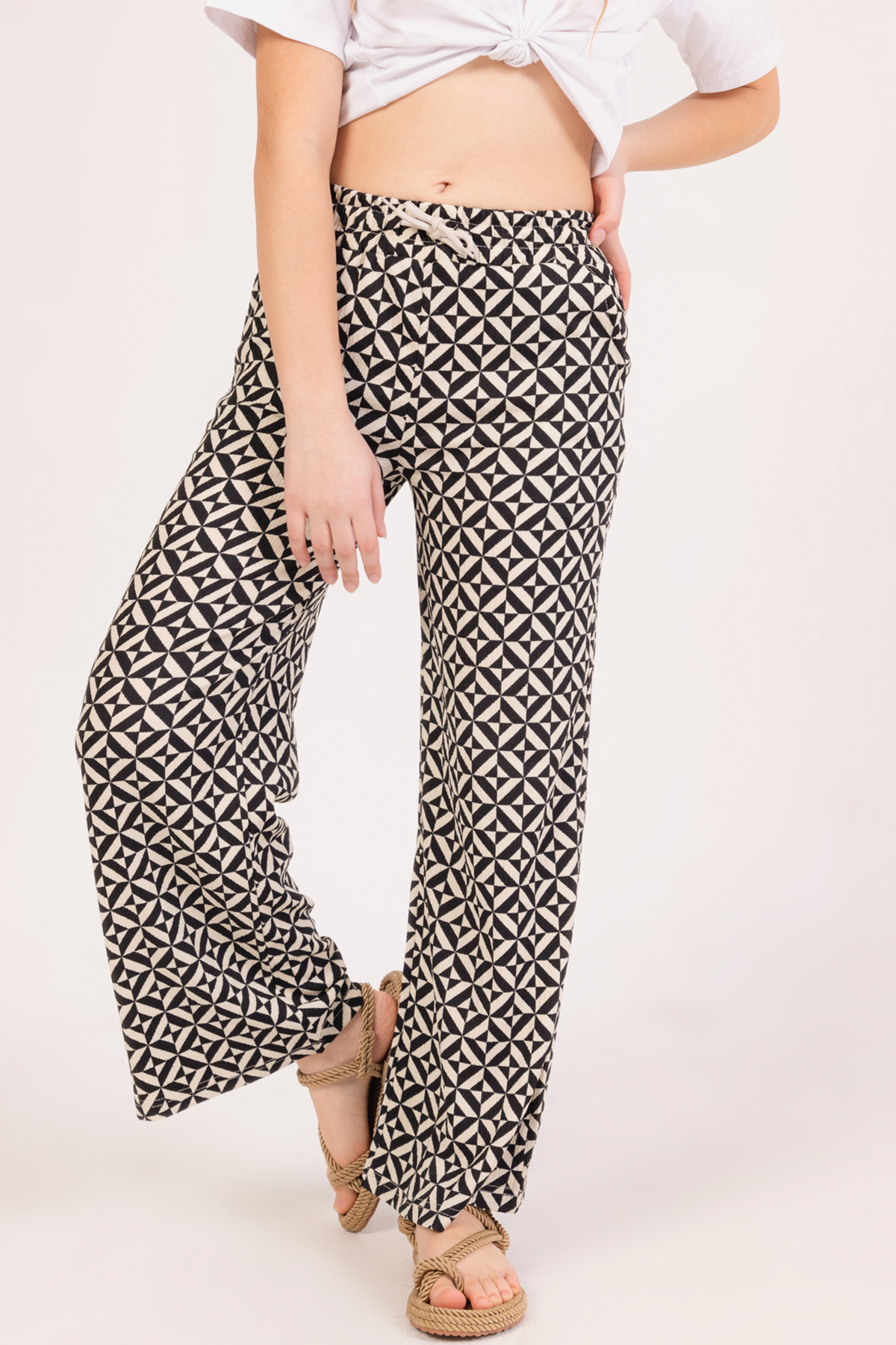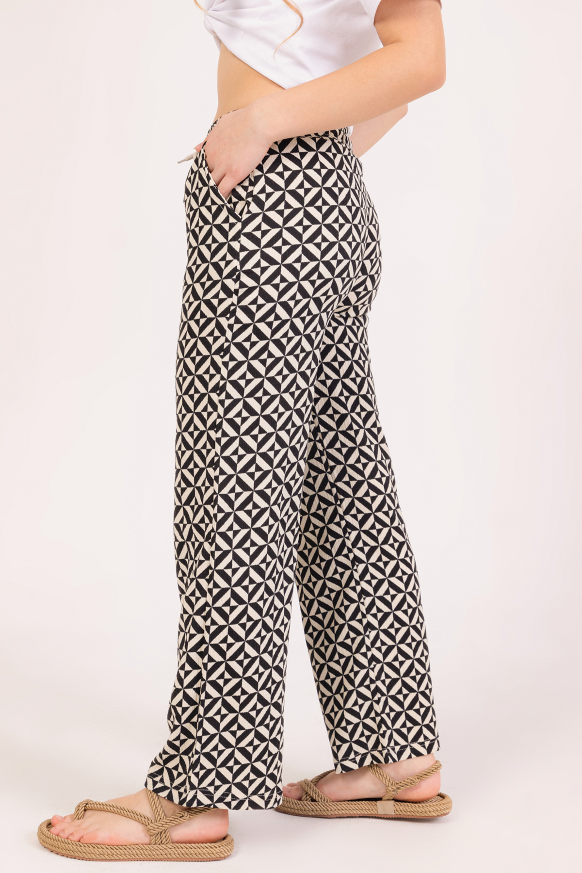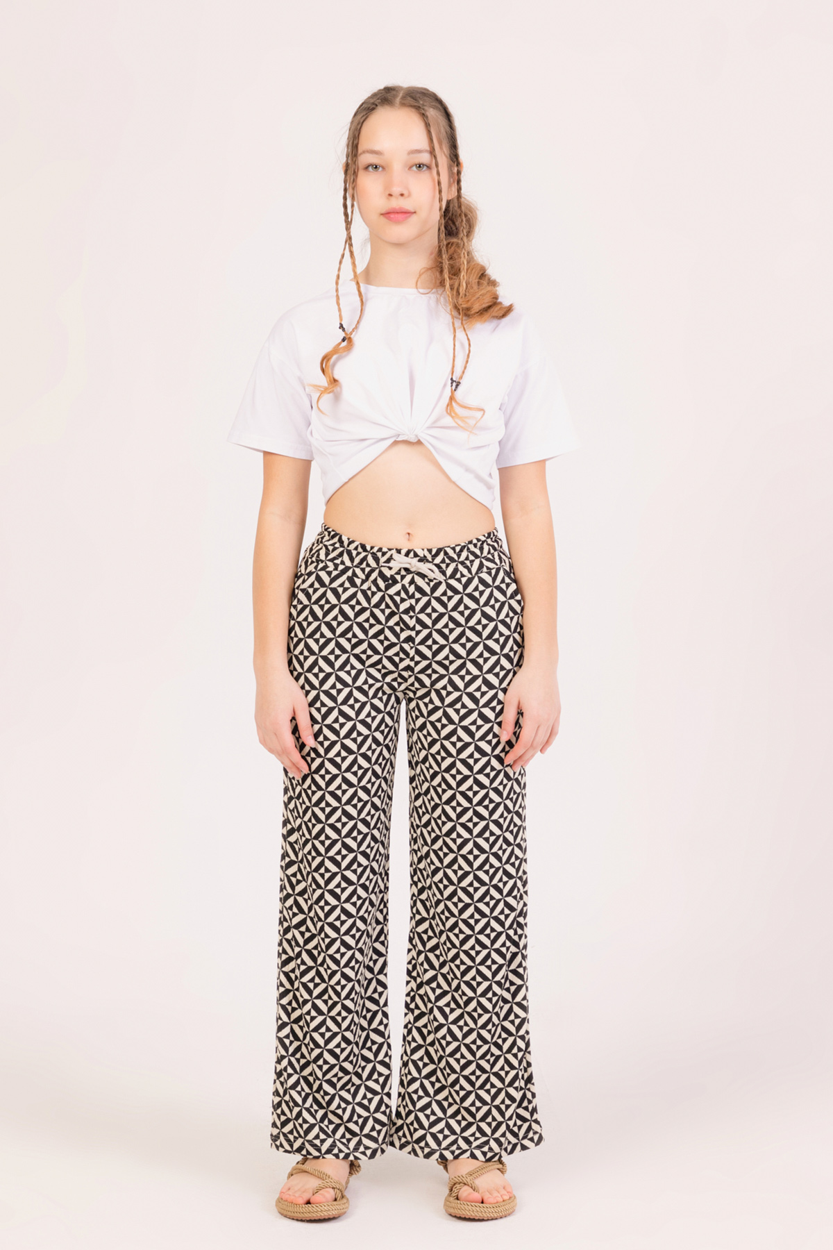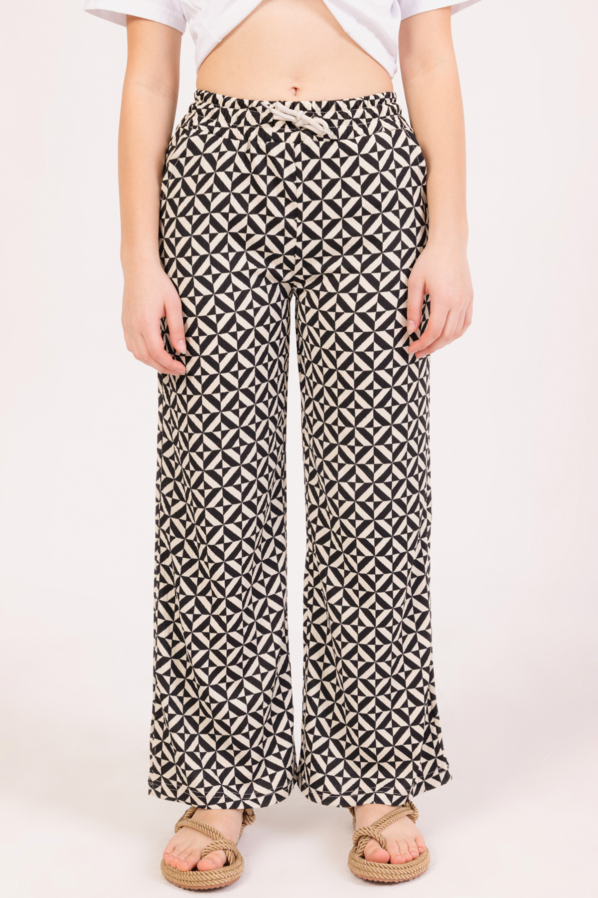 Kız Çocuk Kare Desenli Pantolon-Siyah
