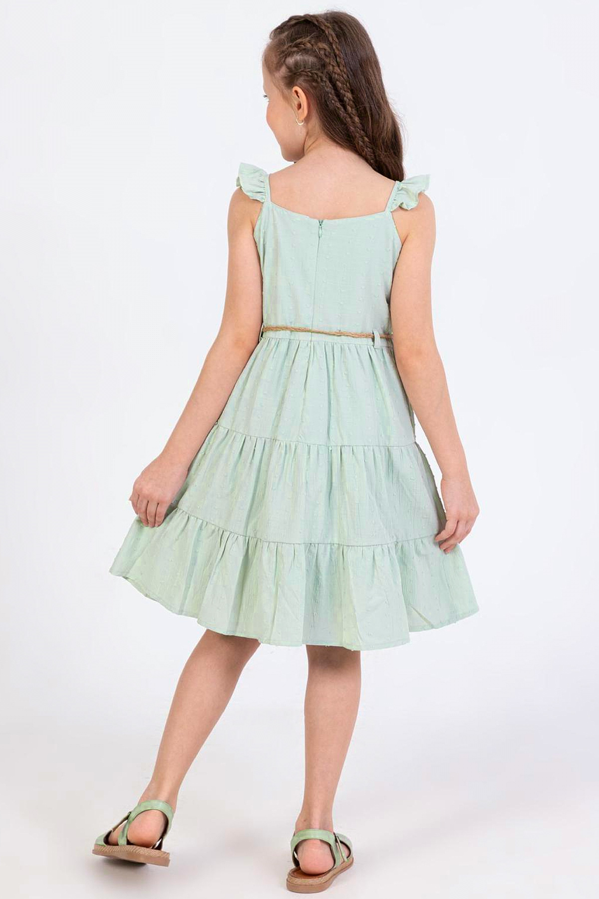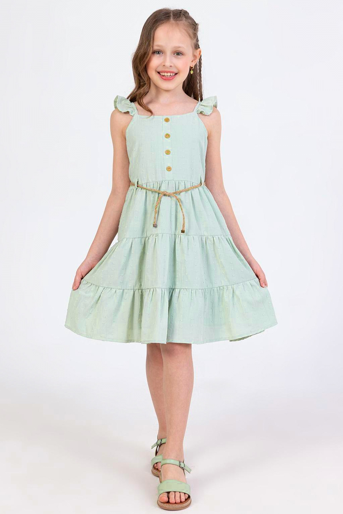 Kız Çocuk Kemerli Elbise-Su Yeşili