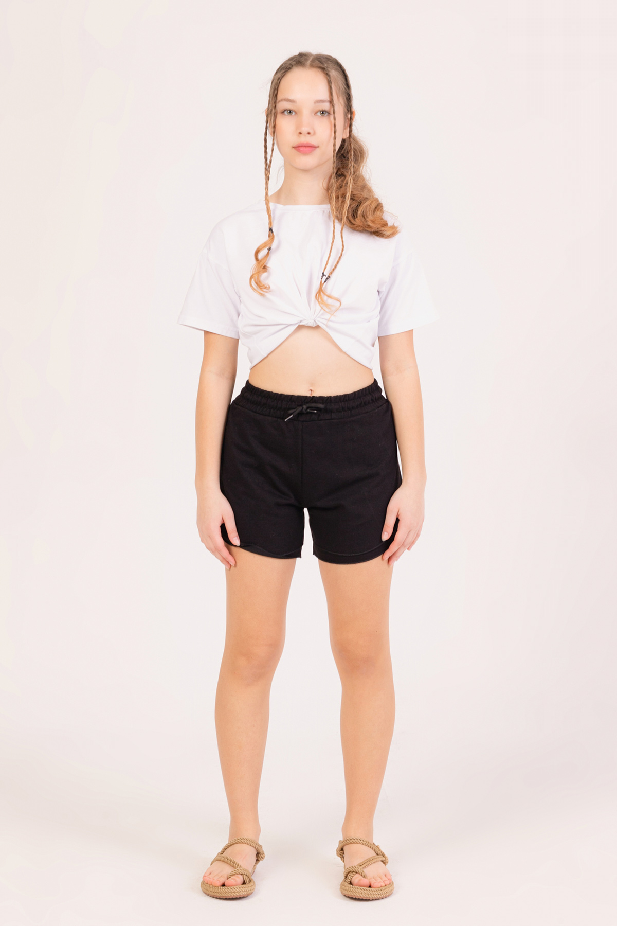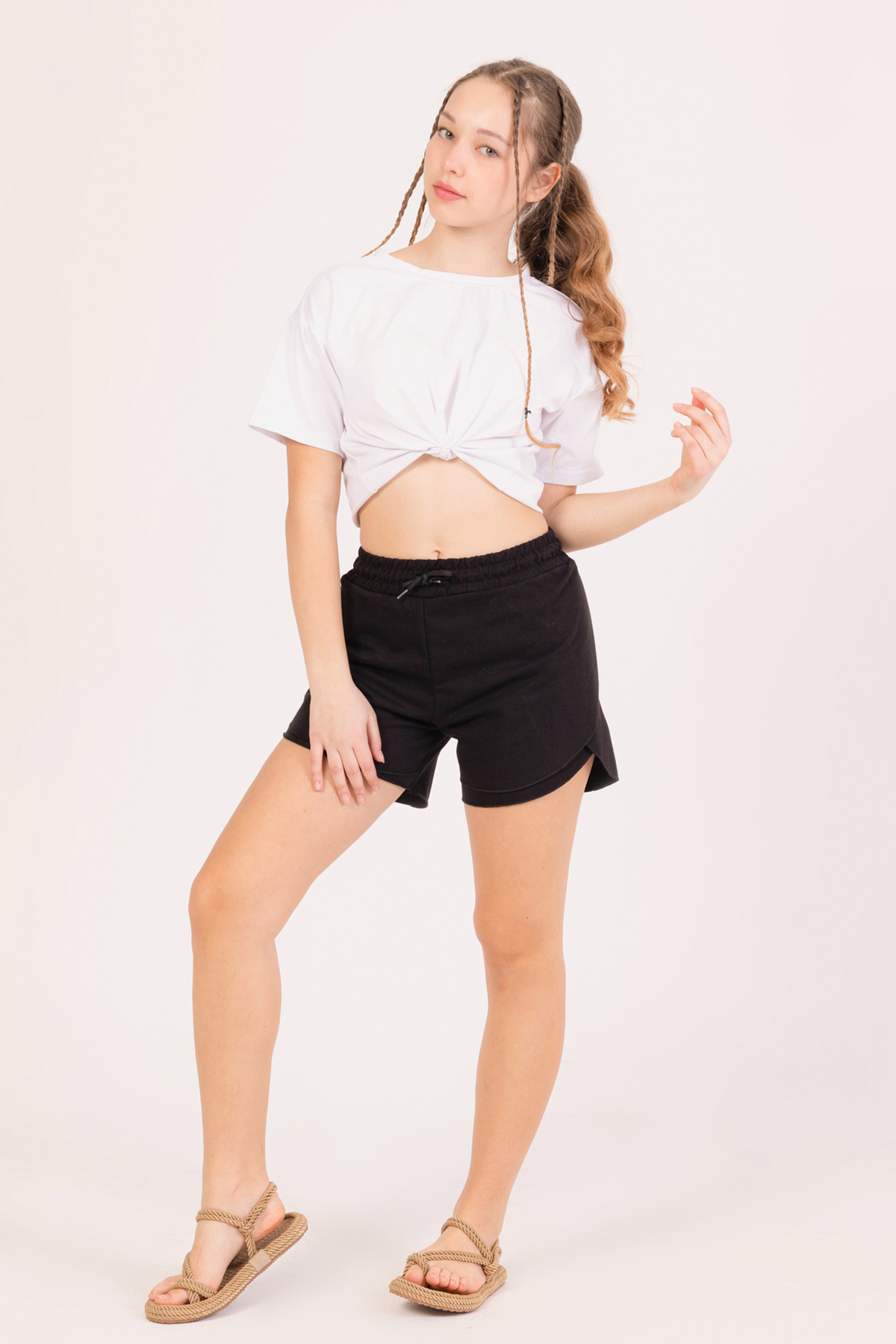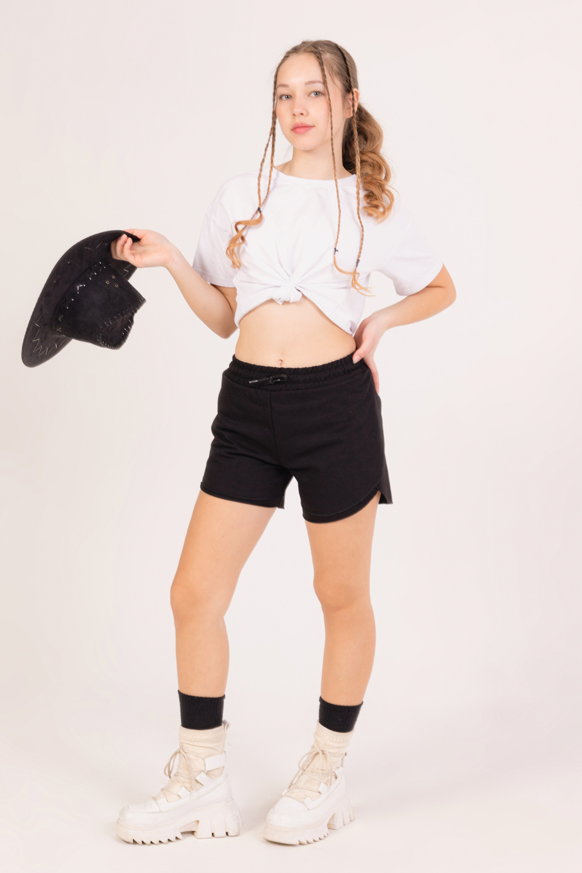 Kız Çocuk Oval Katlı Şort-Siyah