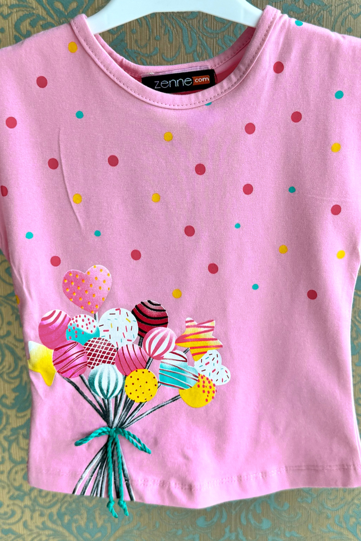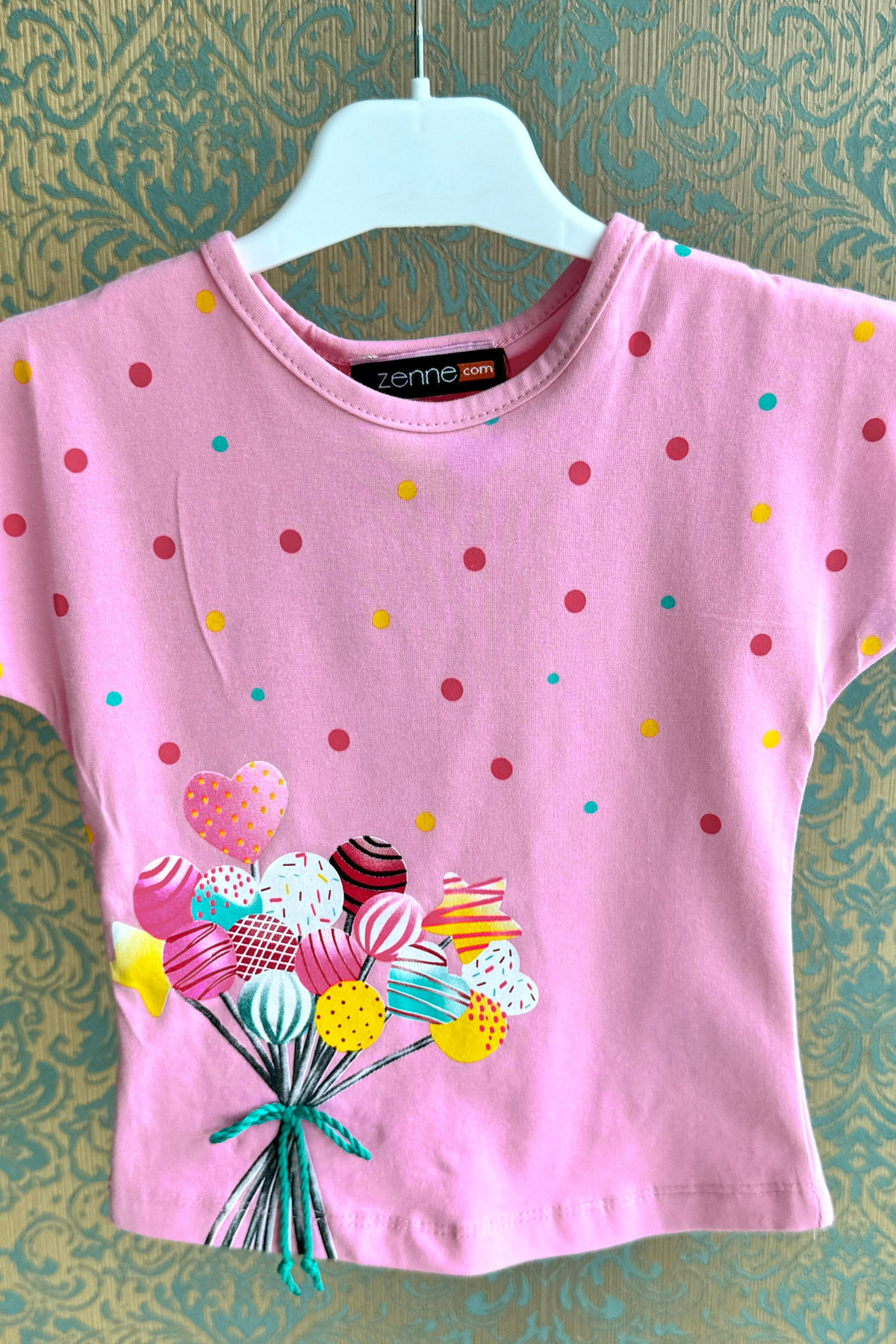 Kız Çocuk Puantiyeli T-shirt-Pembe