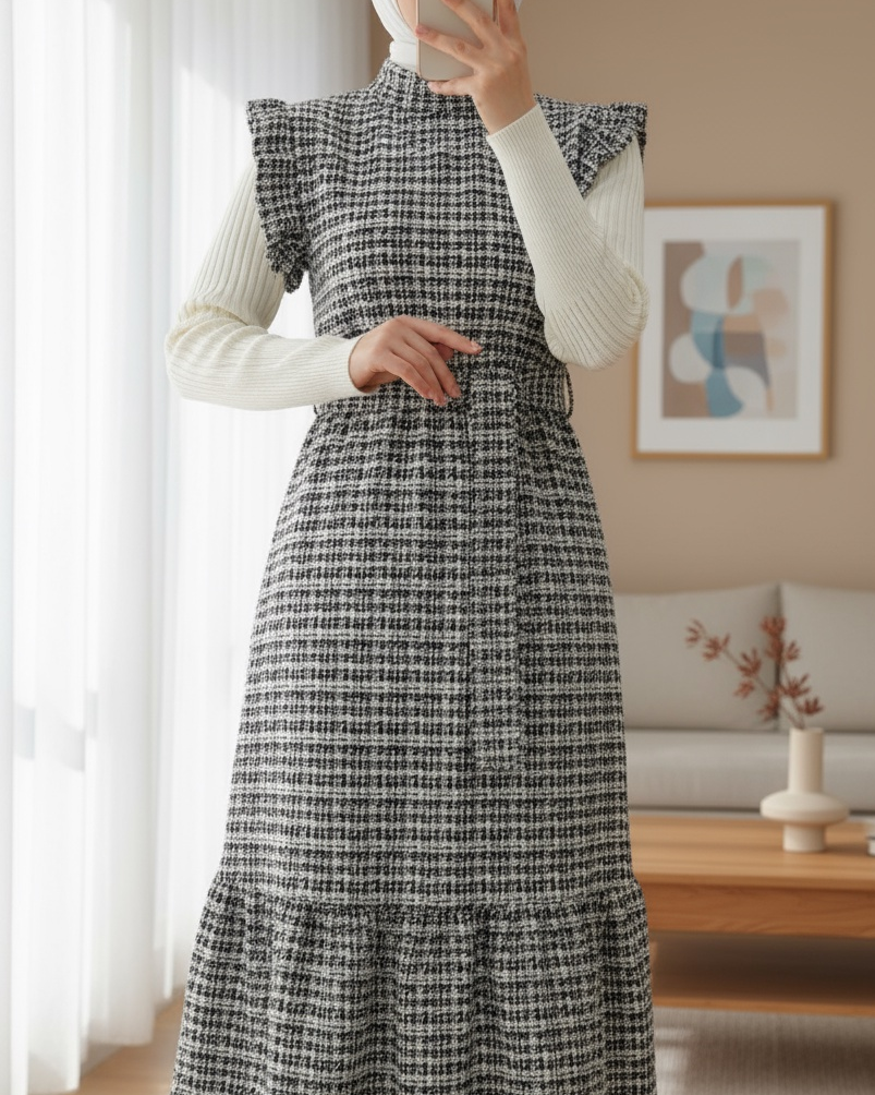 Kolları Fırfırlı Kemerli Tuvit Jile -Krem-Krem