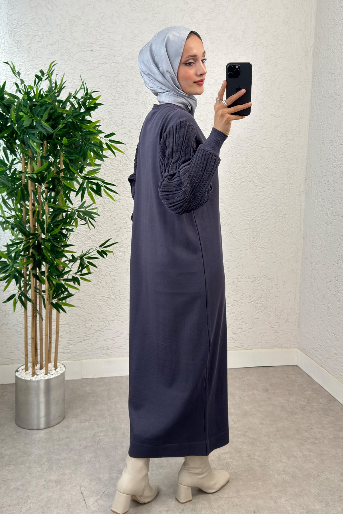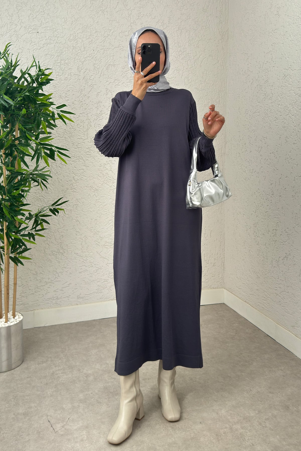 Kolları Simli Triko Elbise Antrasit-Antrasit
