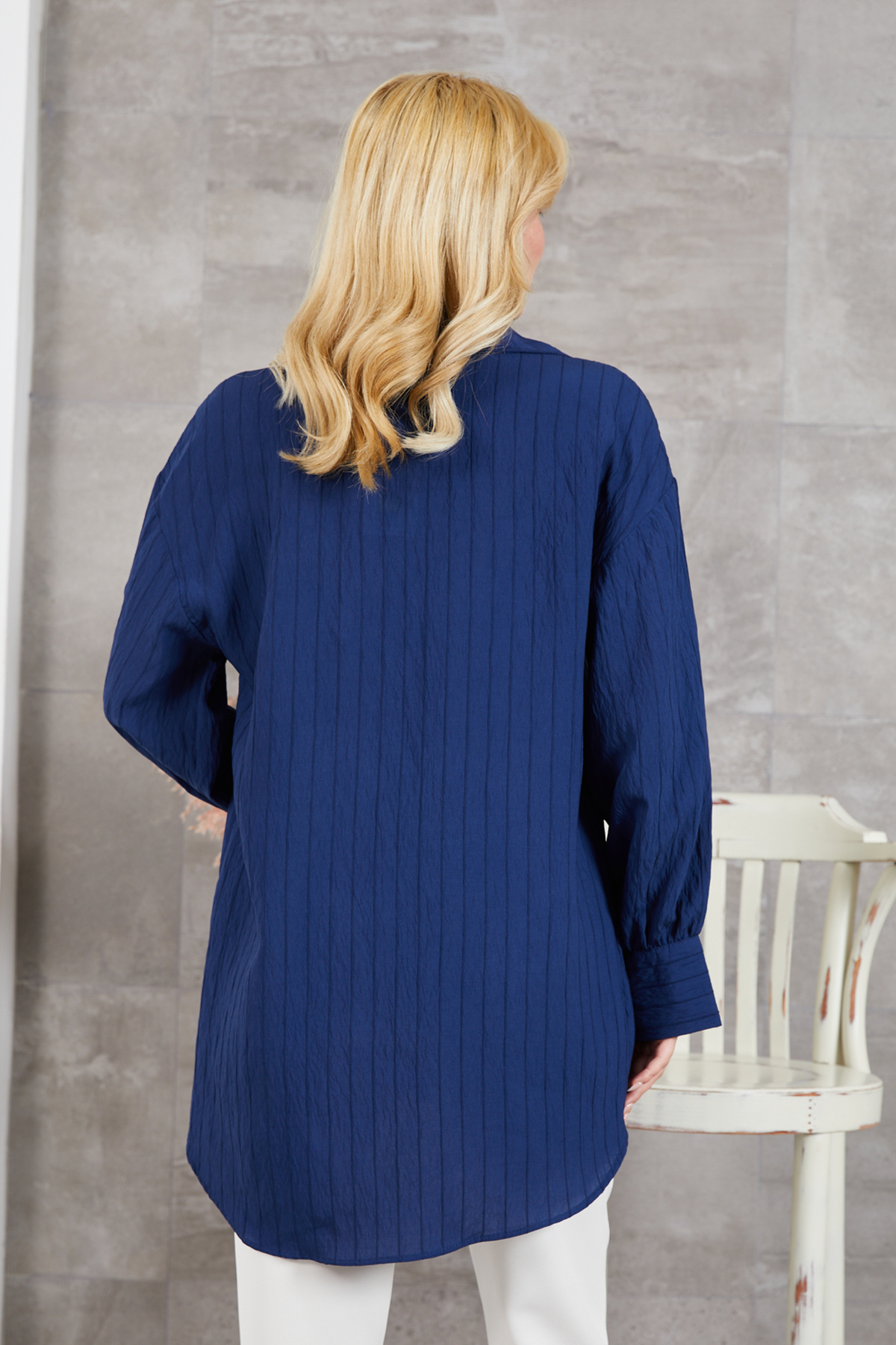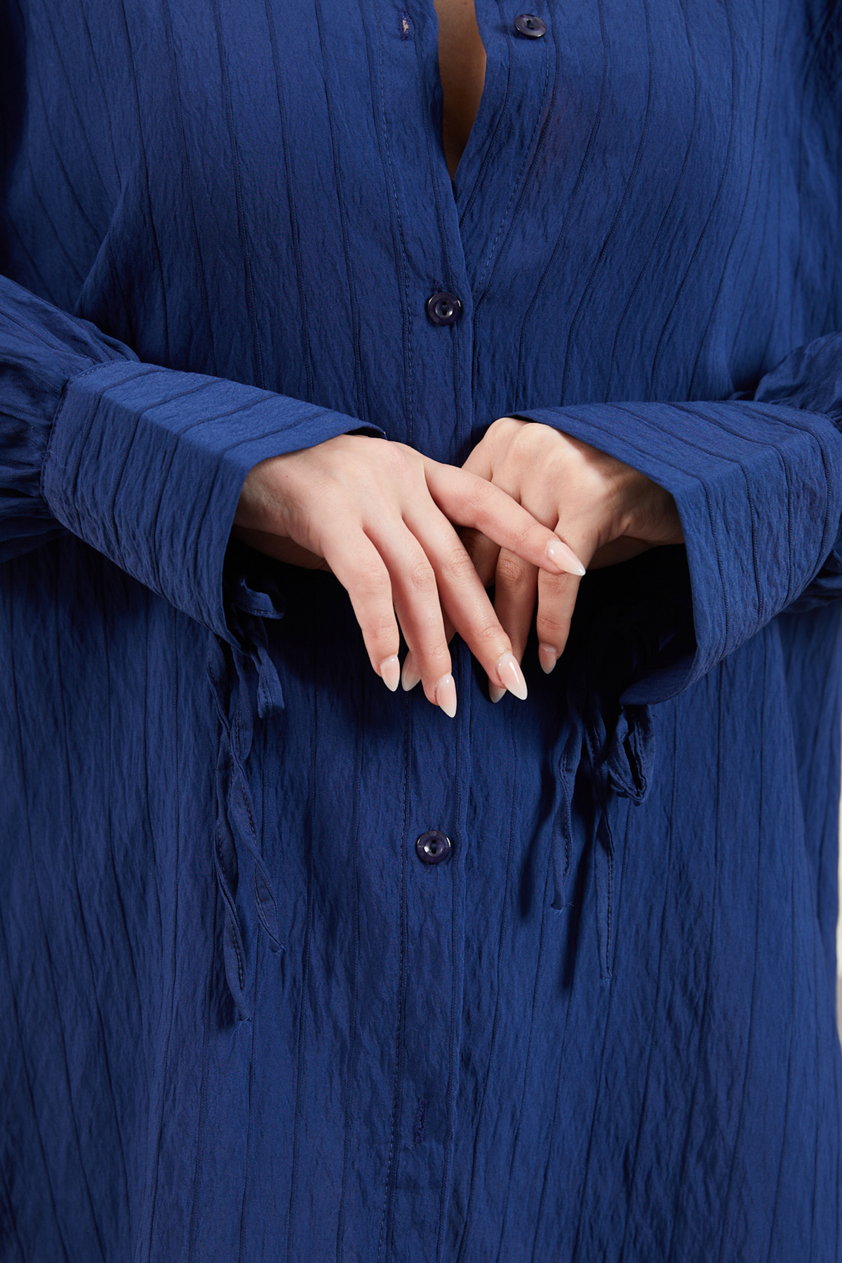 Kolu Bağcıklı Gömlek-Lacivert