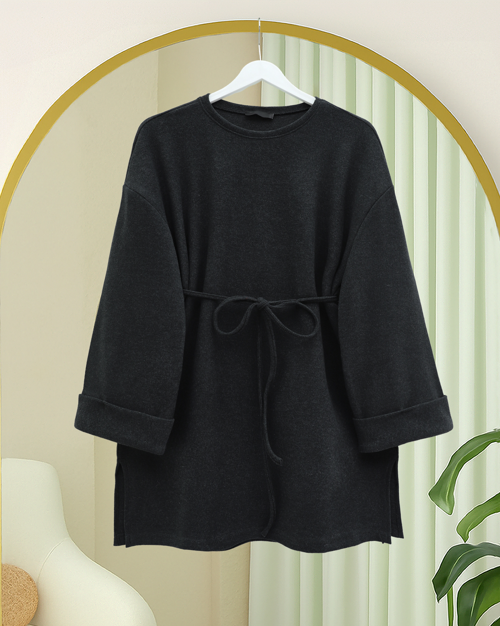 Kolu Katlı Beli Bağlamalı Yırtmaçlı Kaşkorse Tunik-Antrasit-Antrasit