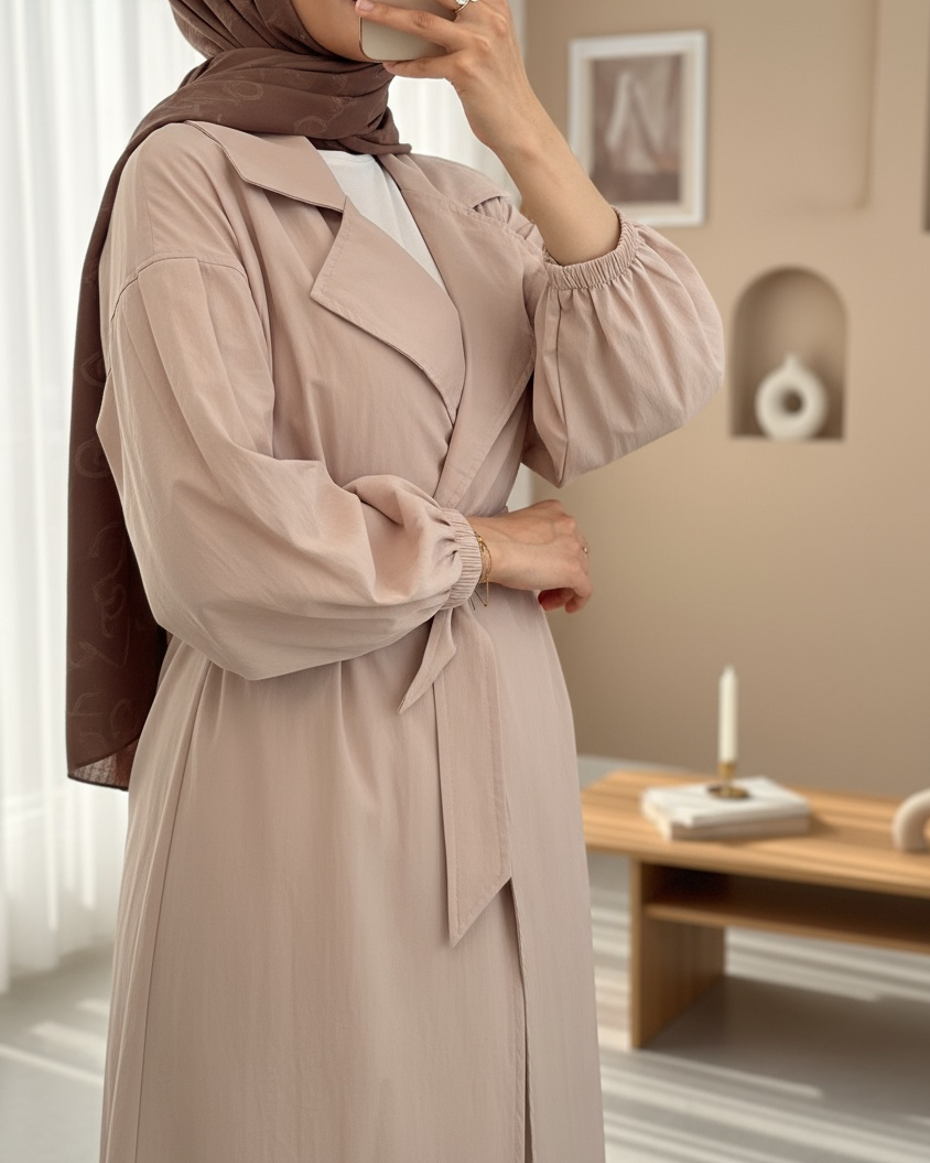 Kolu Lastikli Kemerli Astarlı Trençkot -Taş-Taş