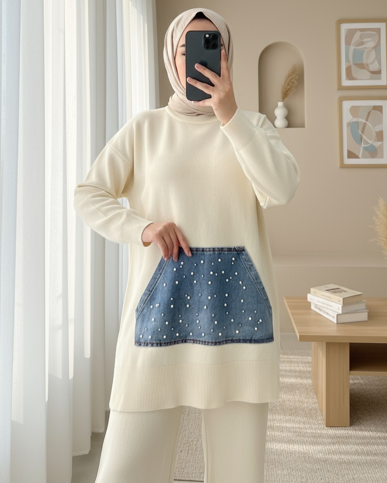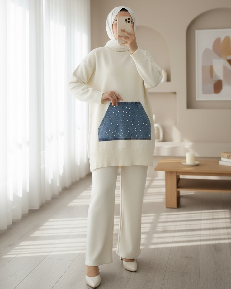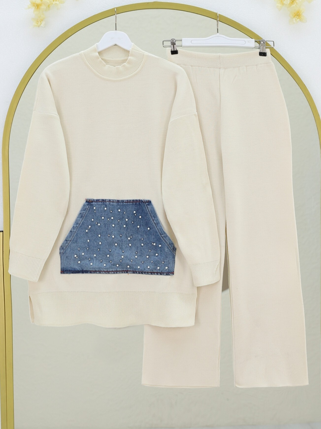 Kot Kanguru Cepli Triko Takım -Krem-Krem