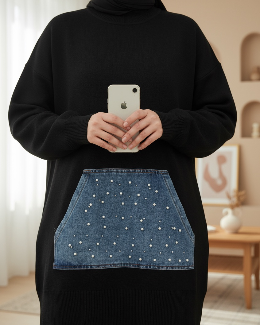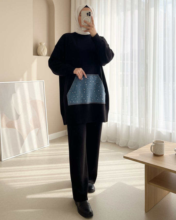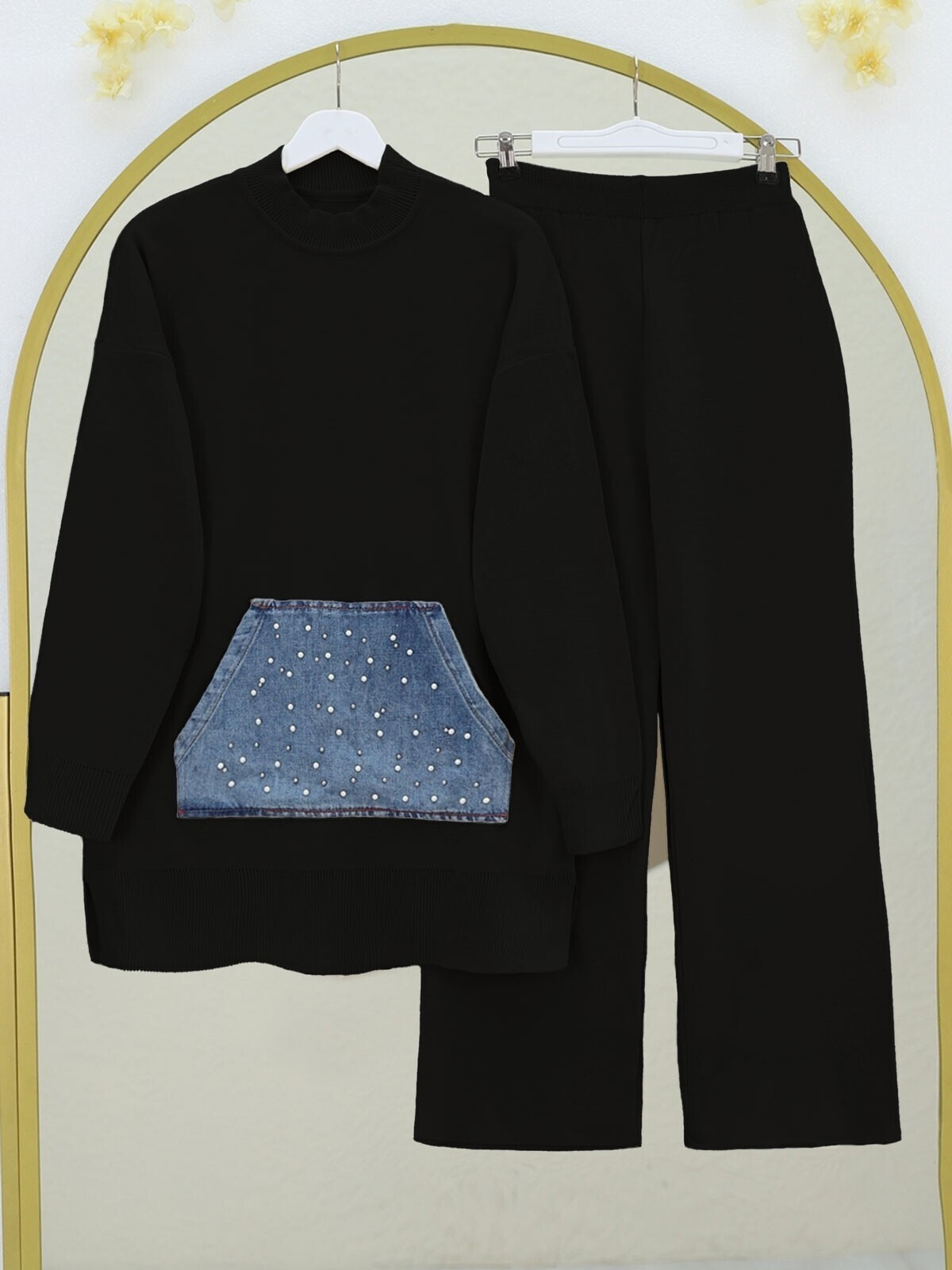 Kot Kanguru Cepli Triko Takım -Siyah-Siyah