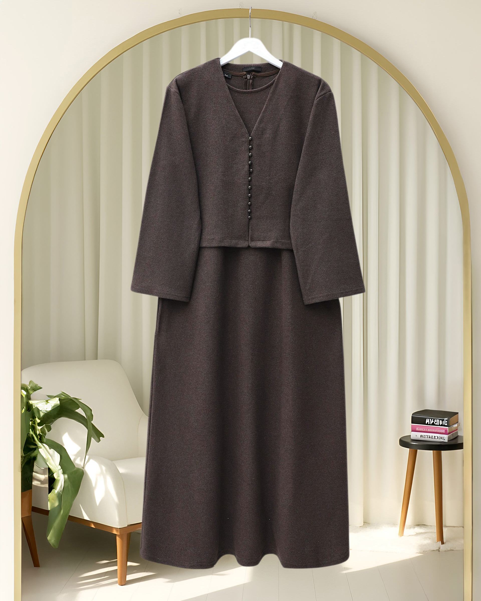Krop Ceketli Selanik Elbise Takım -Toprak-Toprak