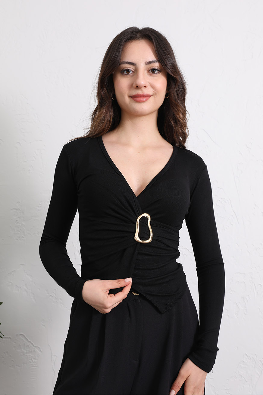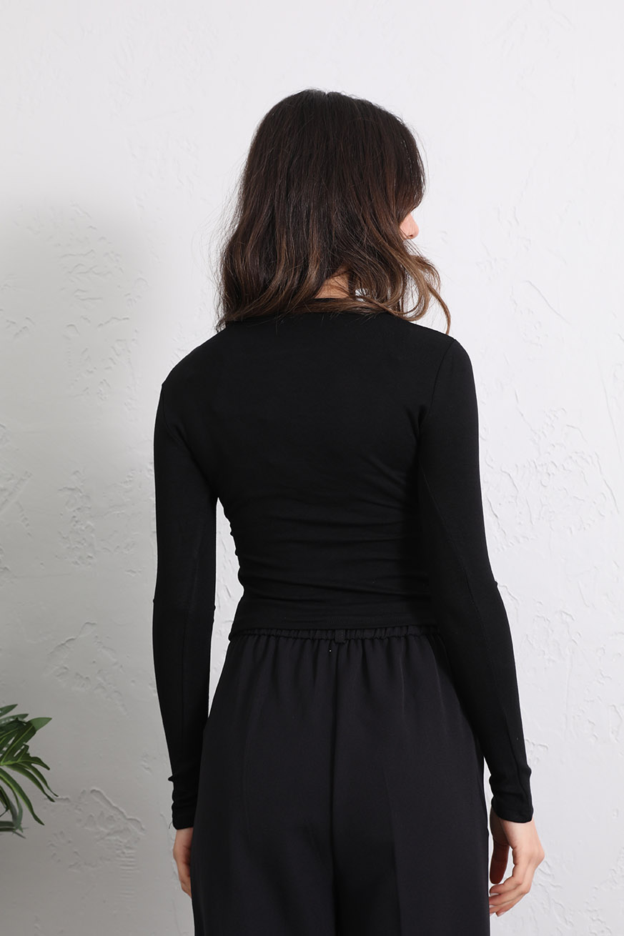 Kruvaze Tokalı Ribana Bluz Siyah - 5161-Siyah