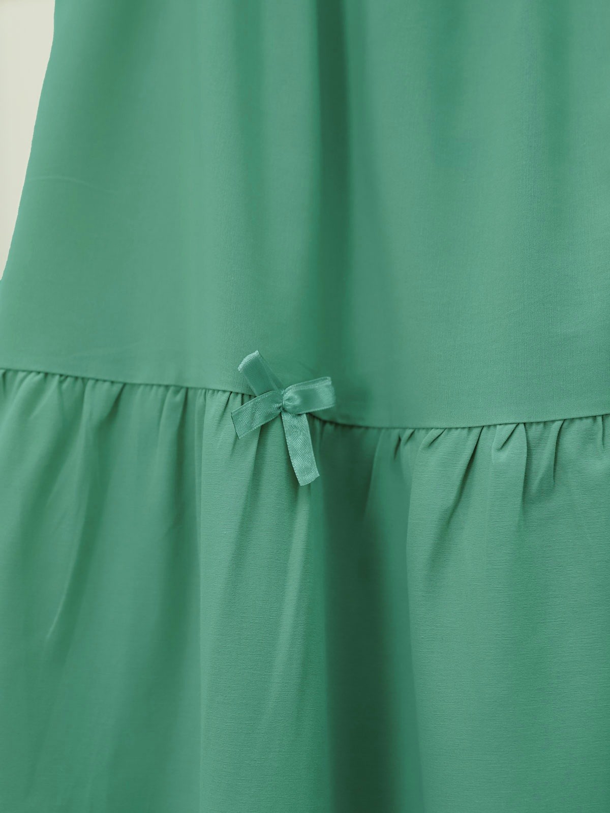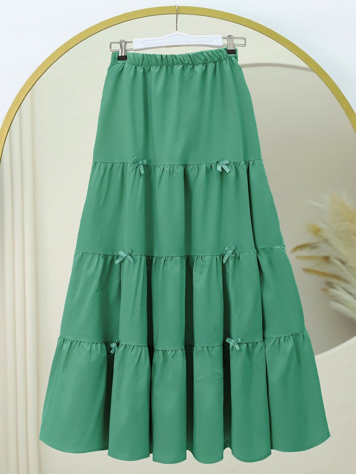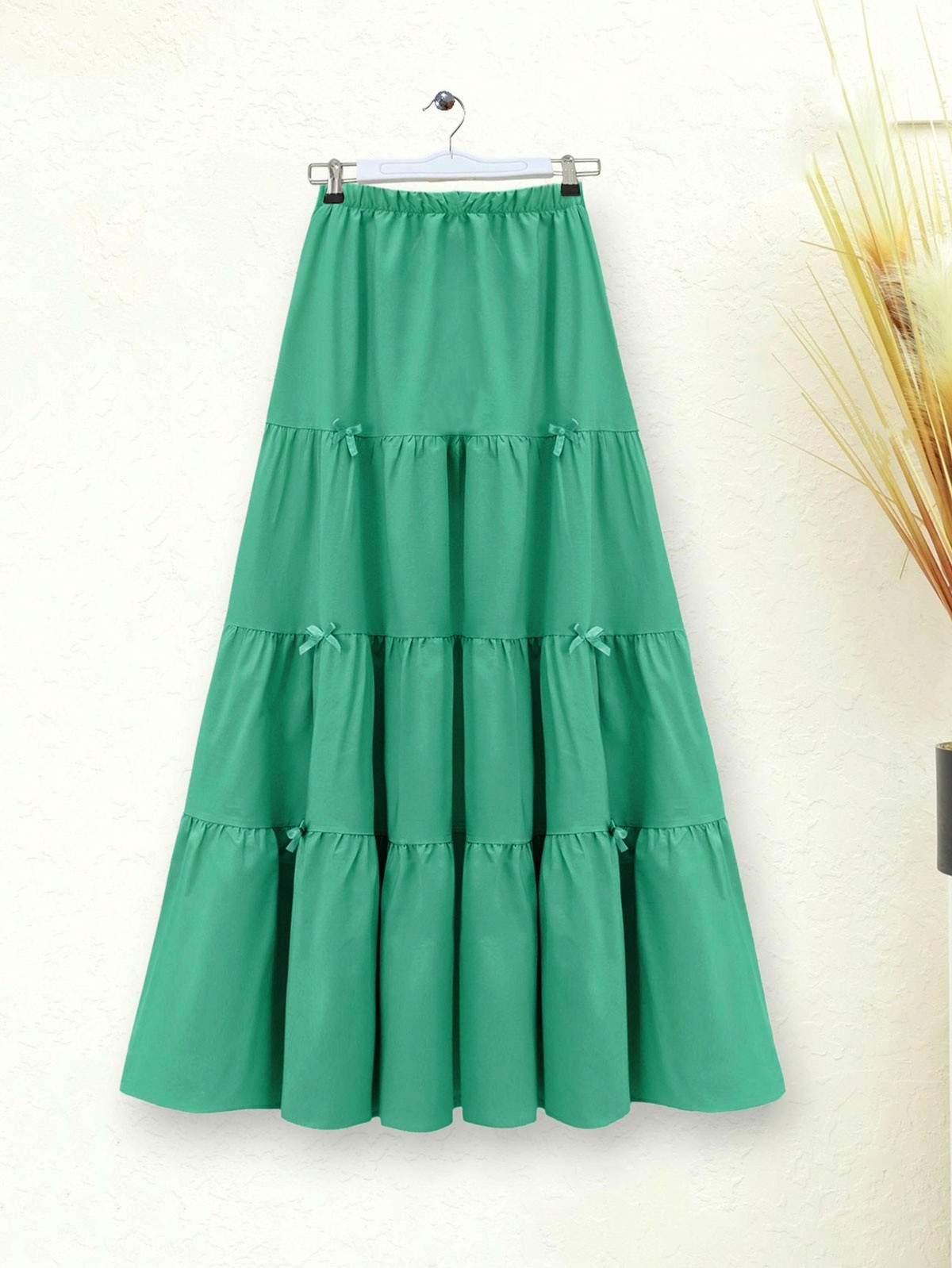 Kurdele Detaylı Parçalı Beli Lastikli Etek -Yeşil-Yeşil