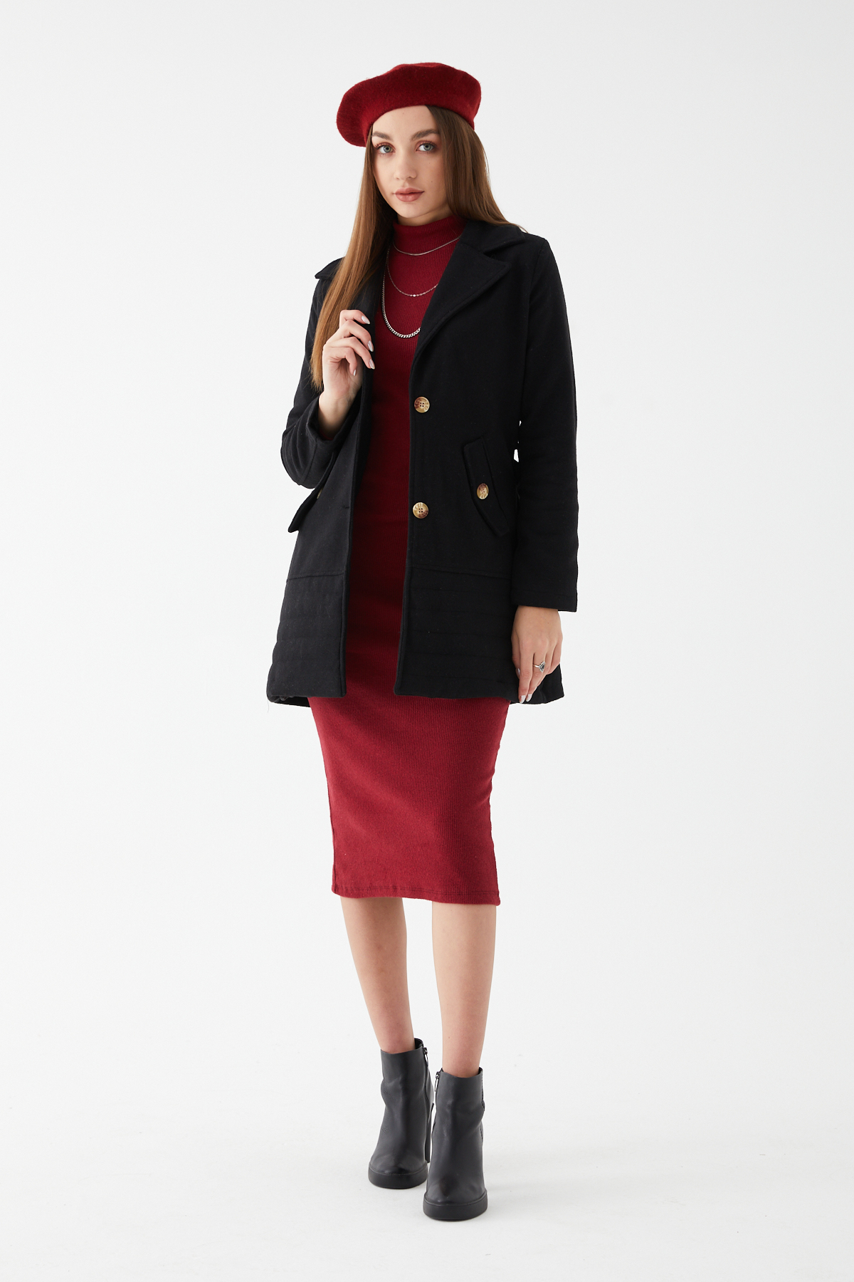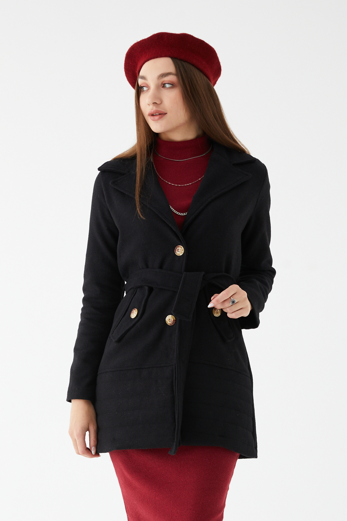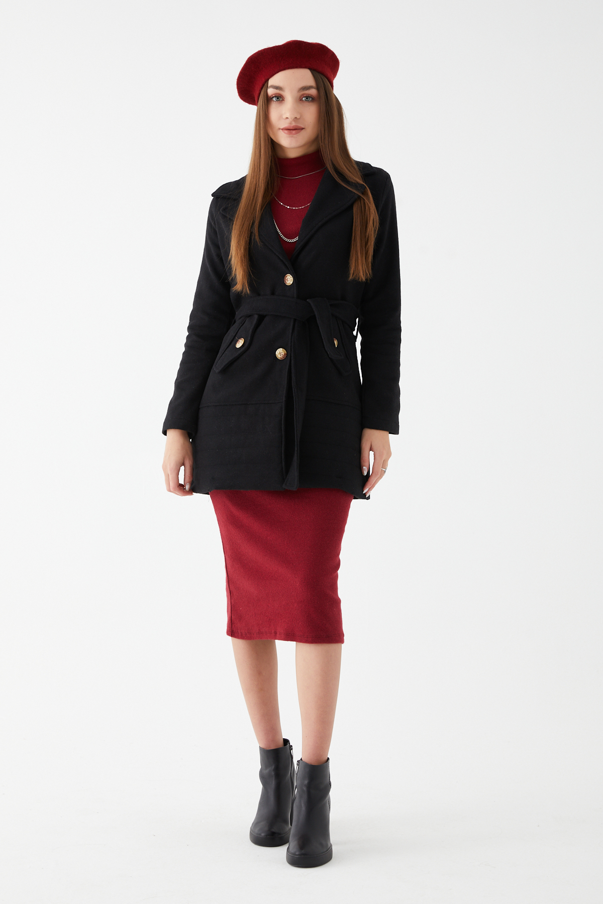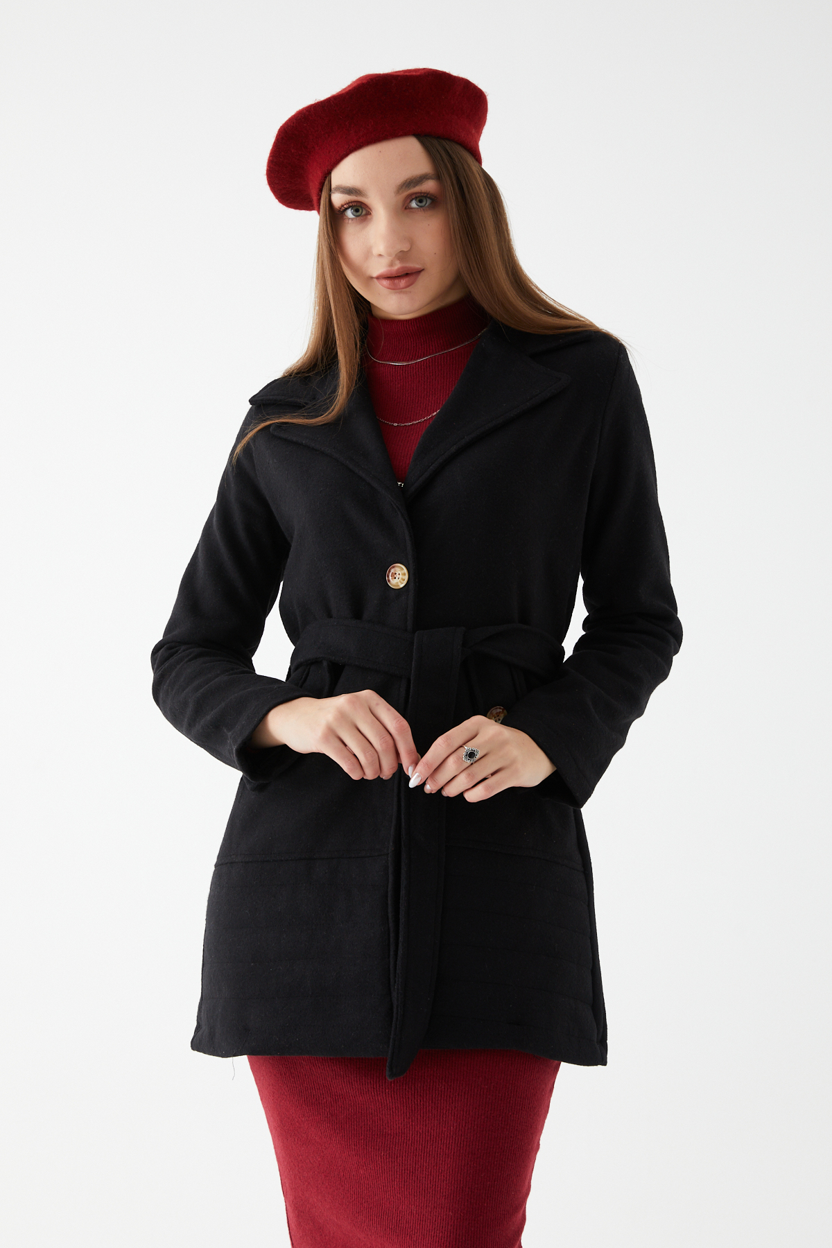 Kuşaklı Kaşe Kaban-Siyah