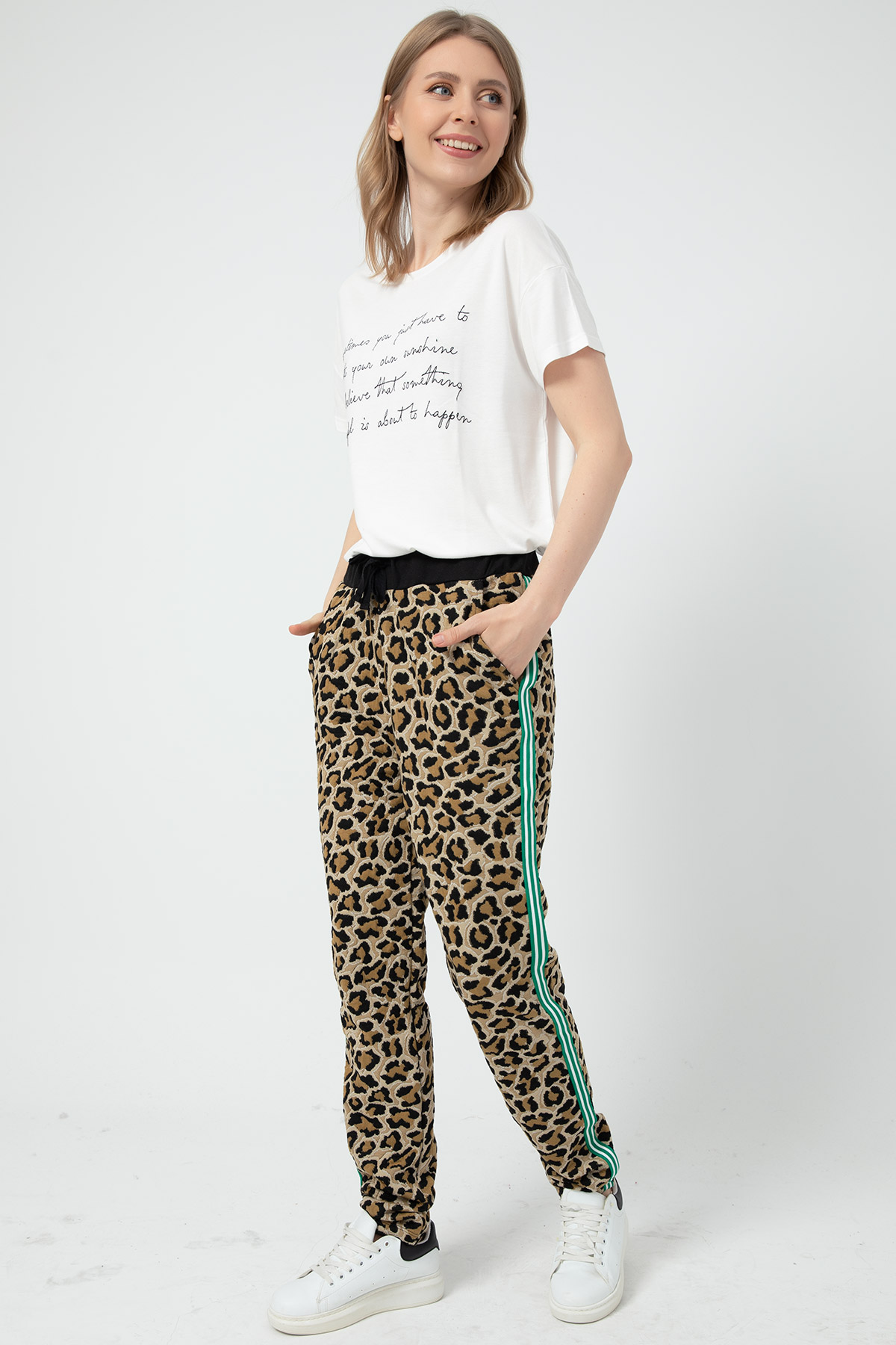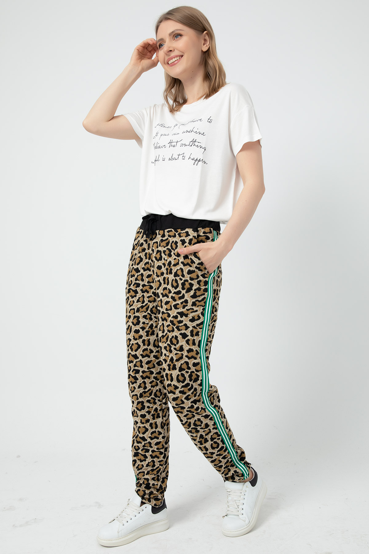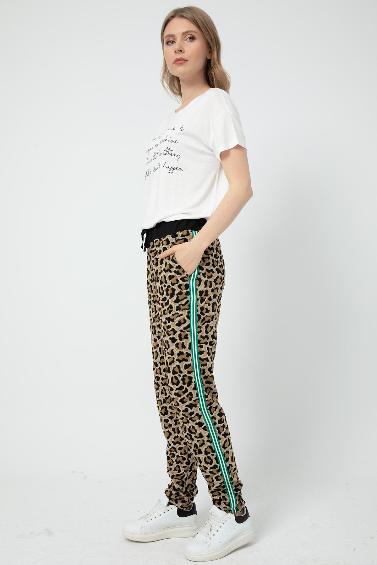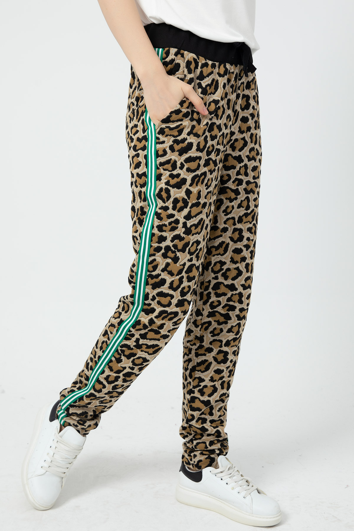 Leopar Desenli Eşofman Altı-Vizon