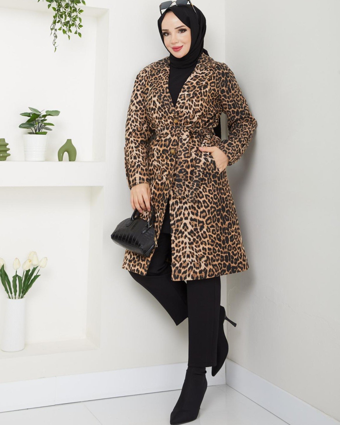 Leopar Desenli Kemerli Cepli Astarlı Kaşe Kap -Leopar-Leopar
