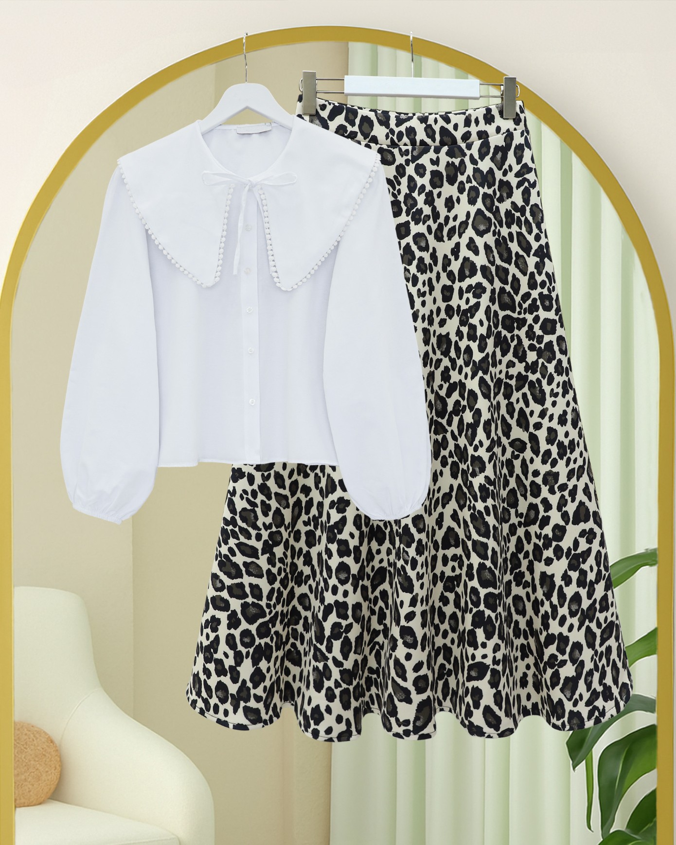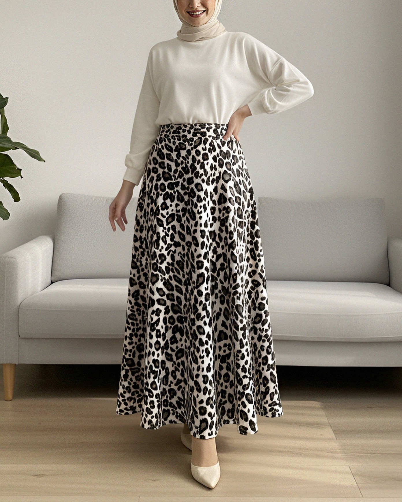 Leopar Desenli Scuba Etek -Bej-Bej