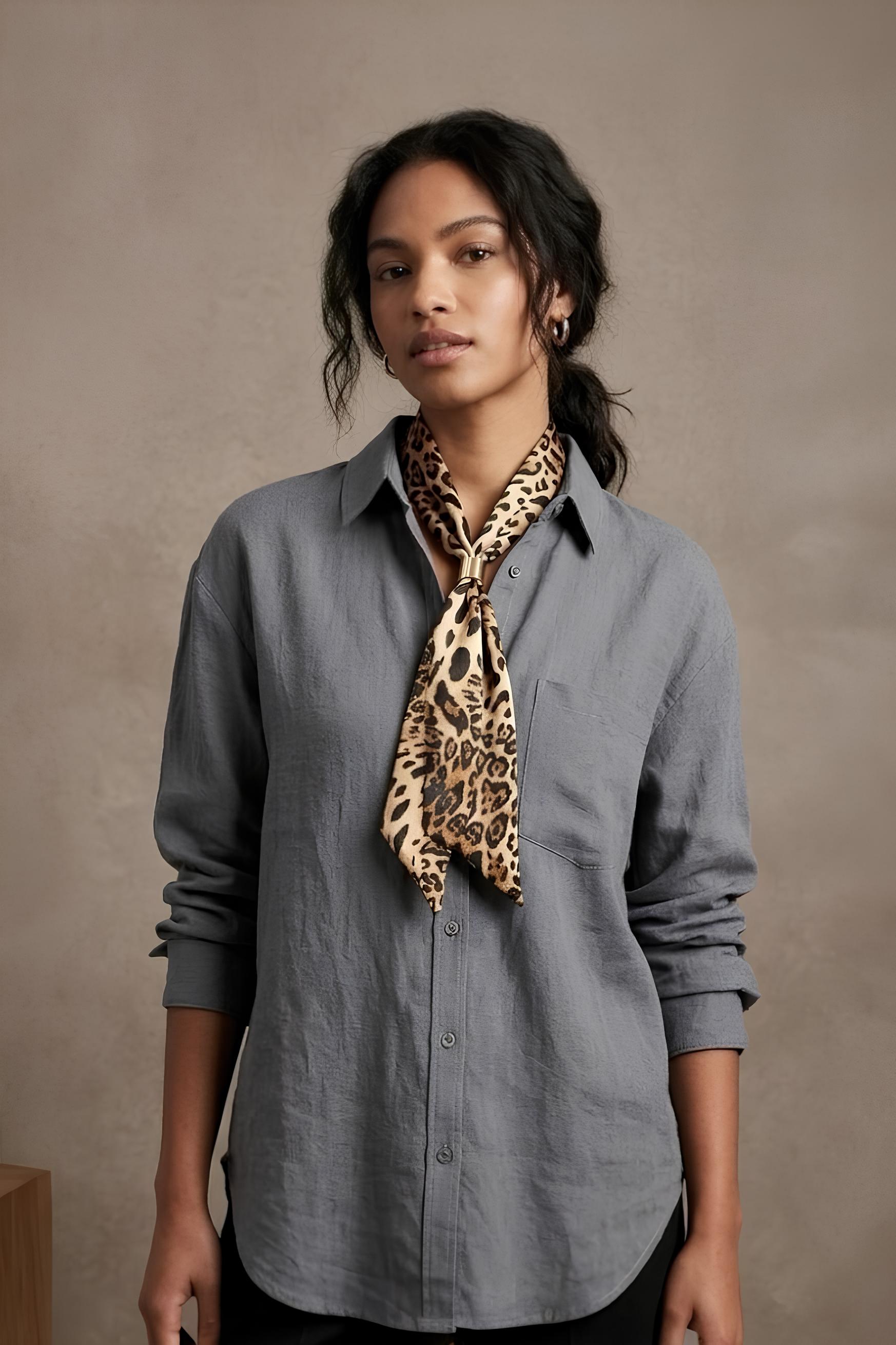 Leopar Fularlı Gömlek Antrasit - 214-Antrasit