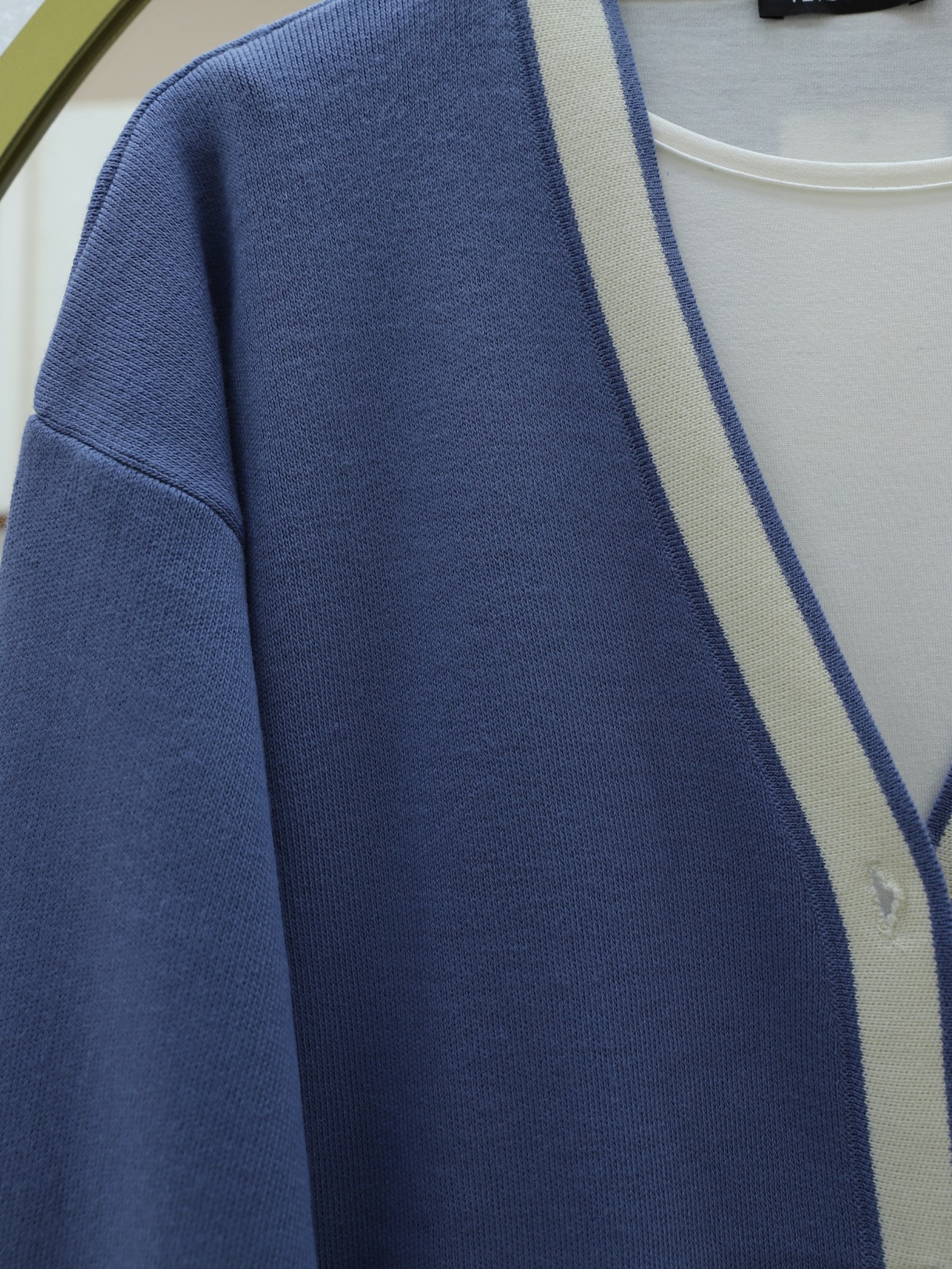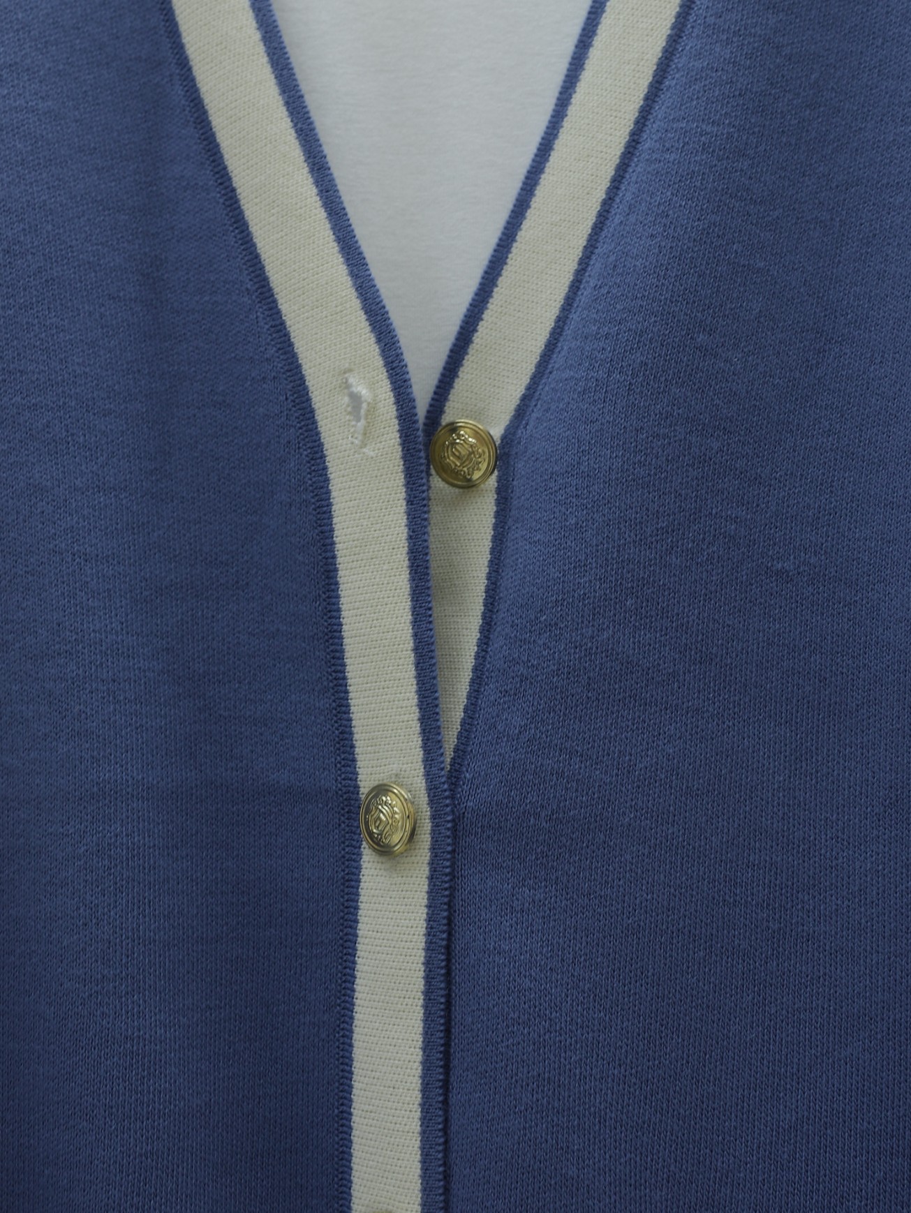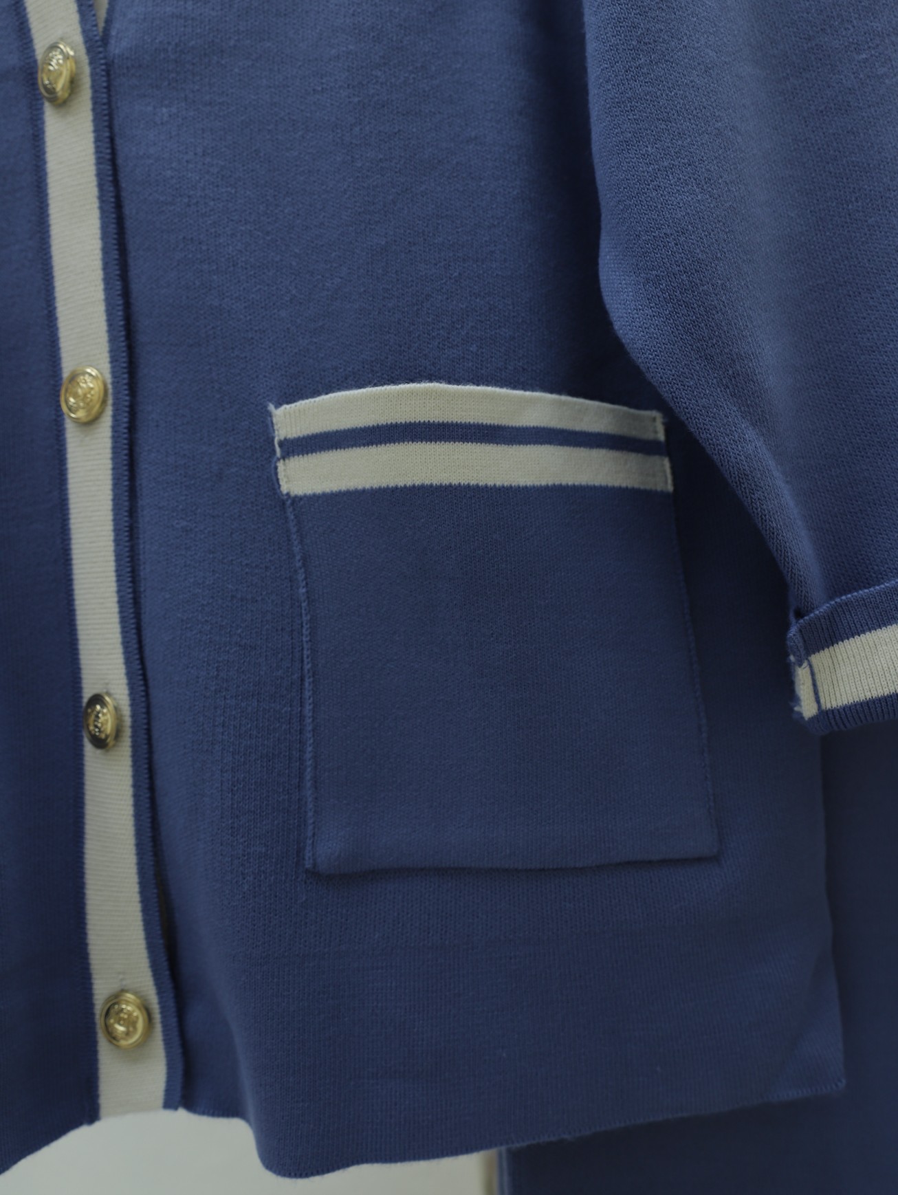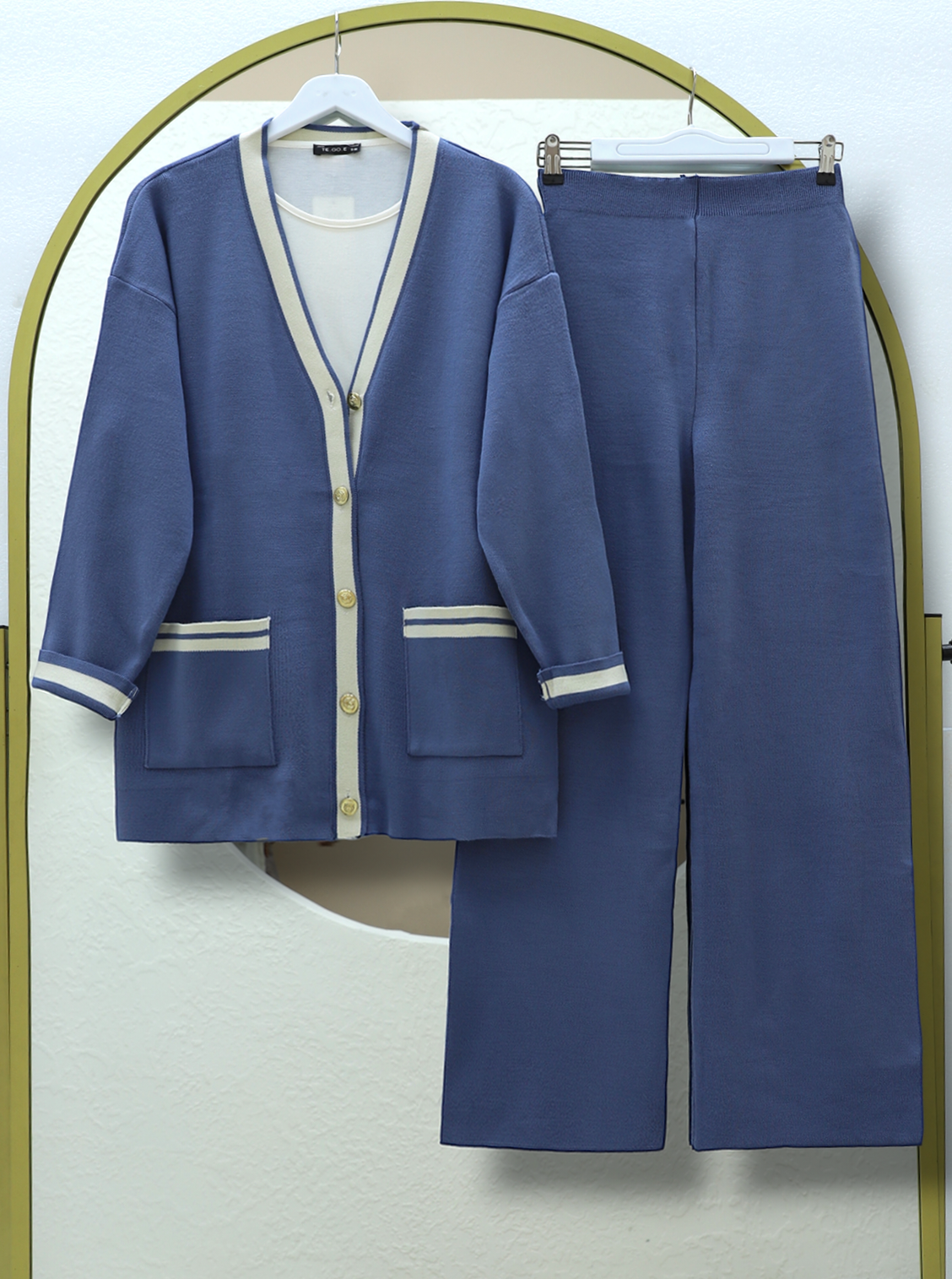 Metal Düğmeli Cepli Triko Hırkalı İkili Takım -İndigo-İndigo