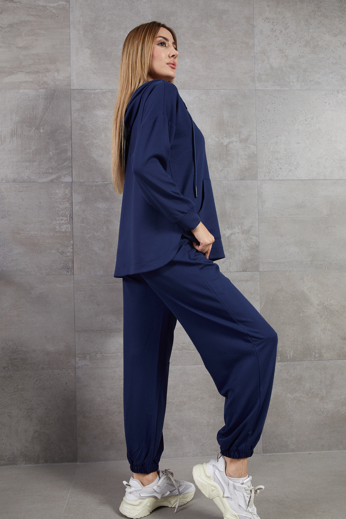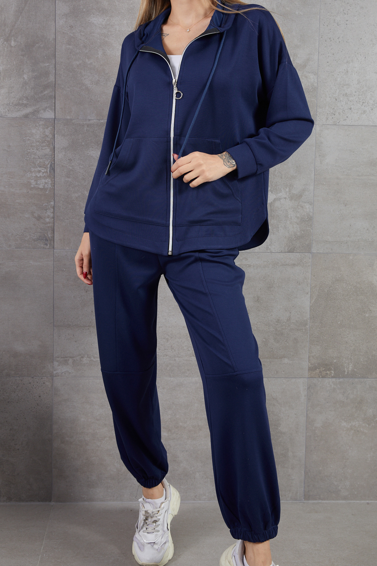 Modal Kapüşonlu Fermuarlı Eşofman Takımı-Lacivert