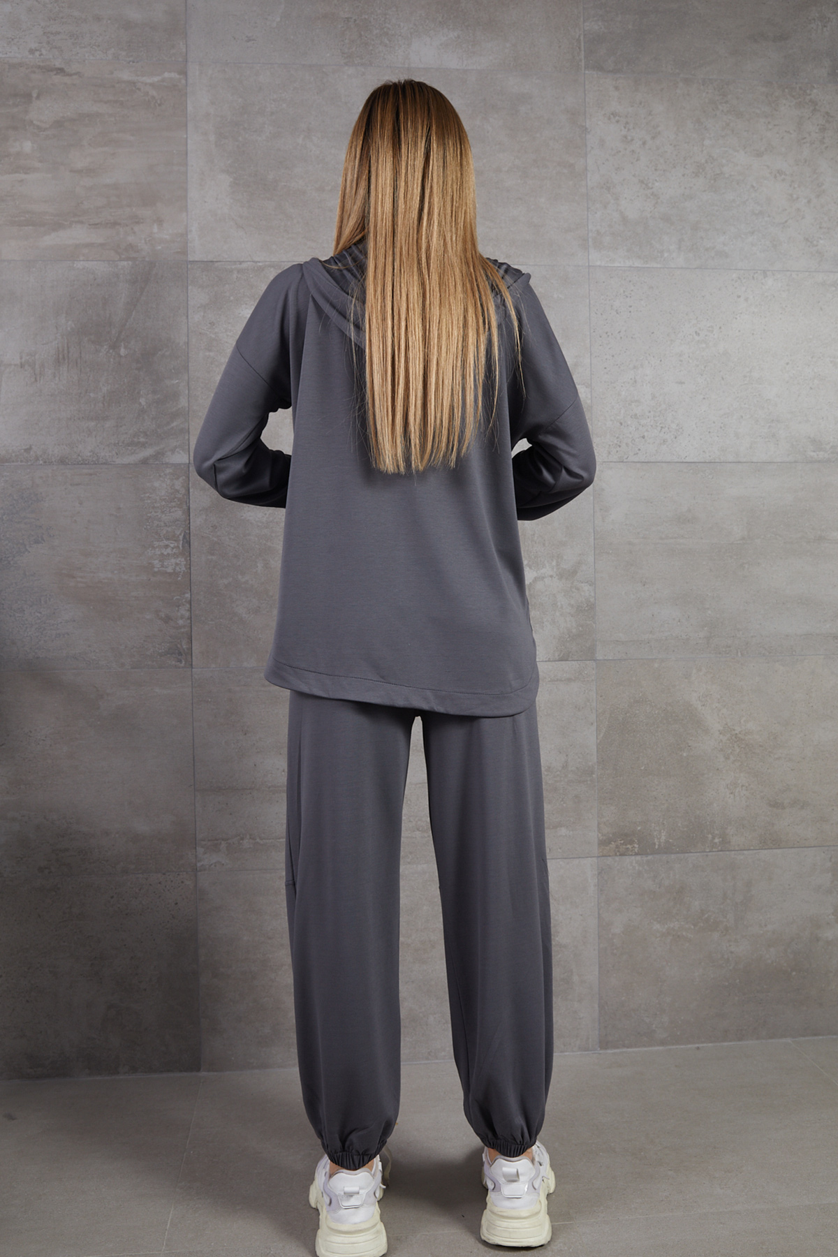 Modal Kapüşonlu Fermuarlı Eşofman Takımı-Füme
