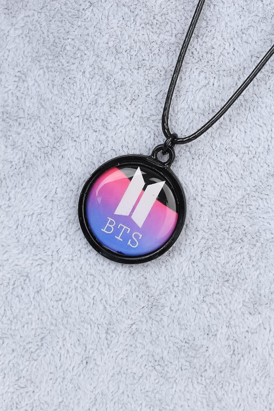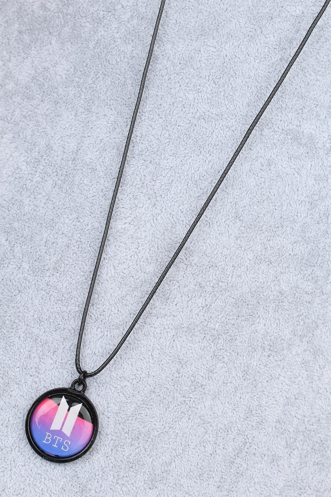 Mor Degrade BTS Unisex Model Siyah Deri İpli Kolye-Siyah