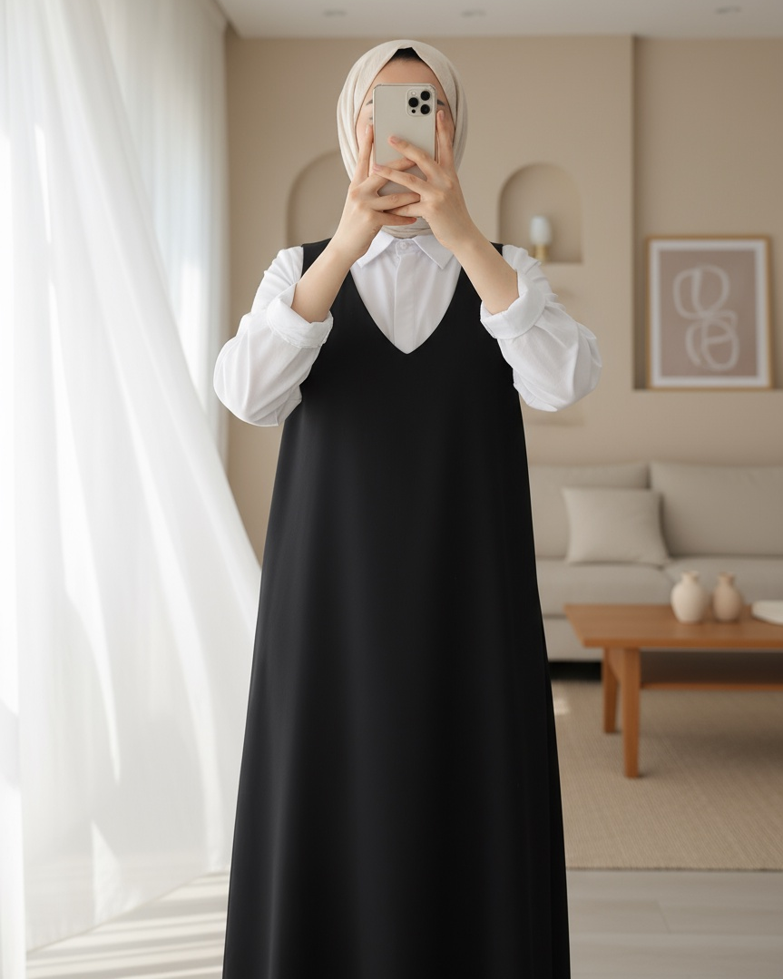 Omuzları Bağlamalı Uzun Jile -Siyah-Siyah