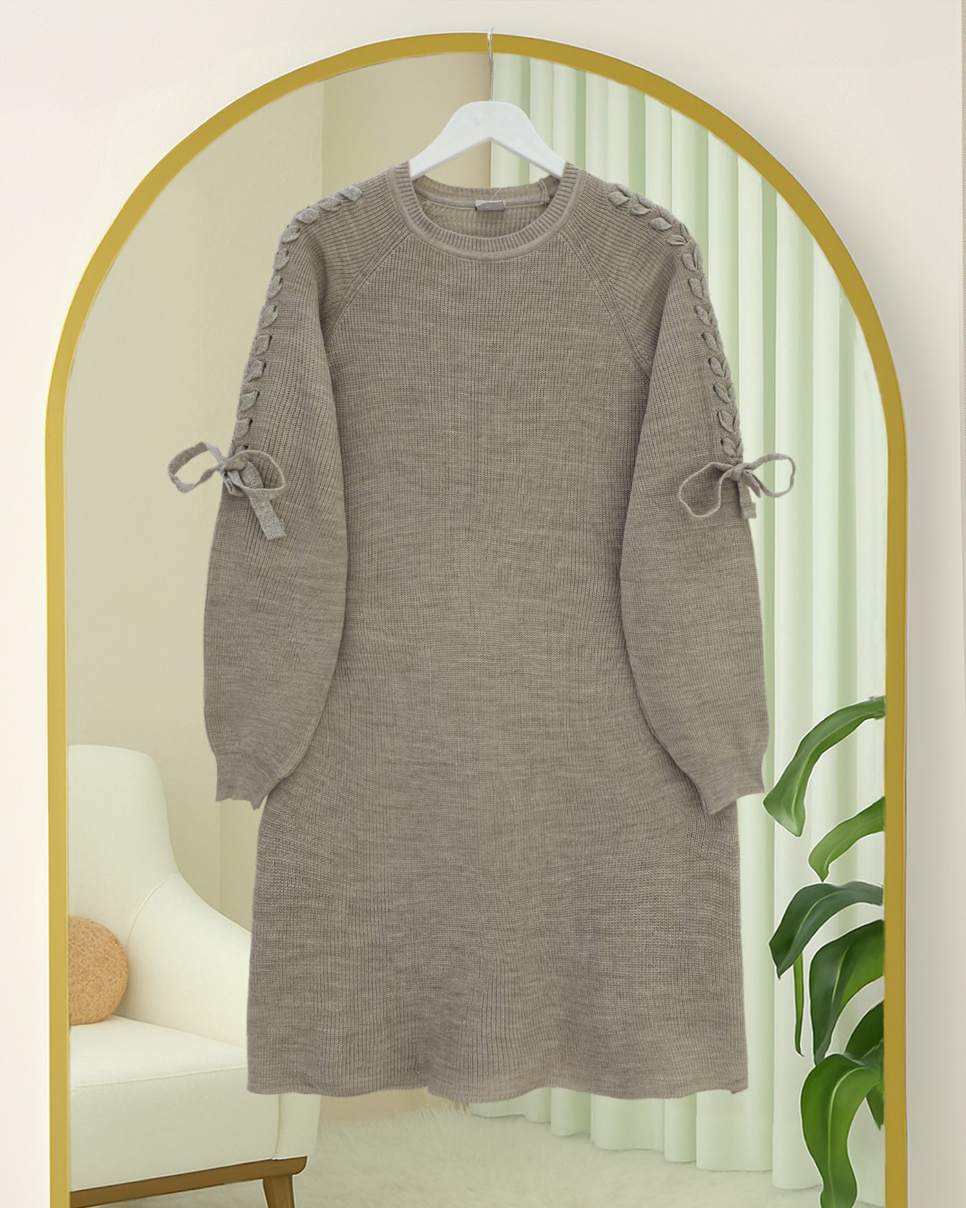 Omuzu Saç Örgülü Salaş Triko Tunik -Toprak-Toprak