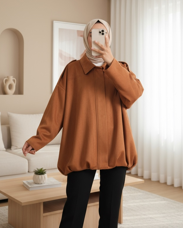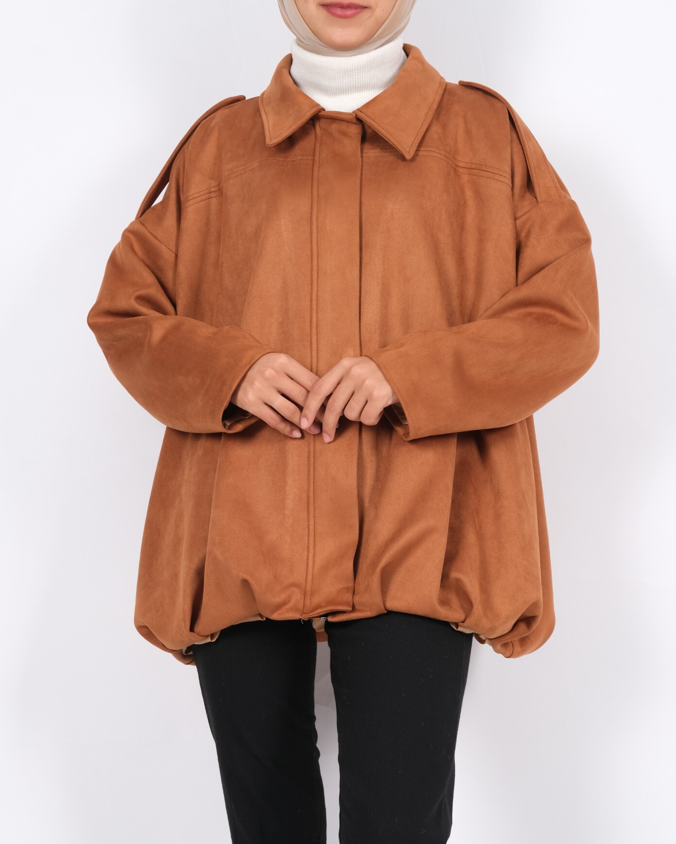 Omzu Apoletli Önü Fermuarlı Astarlı Süet Ceket -Taba-Taba