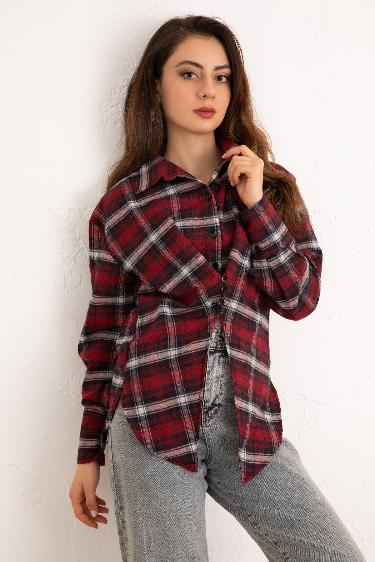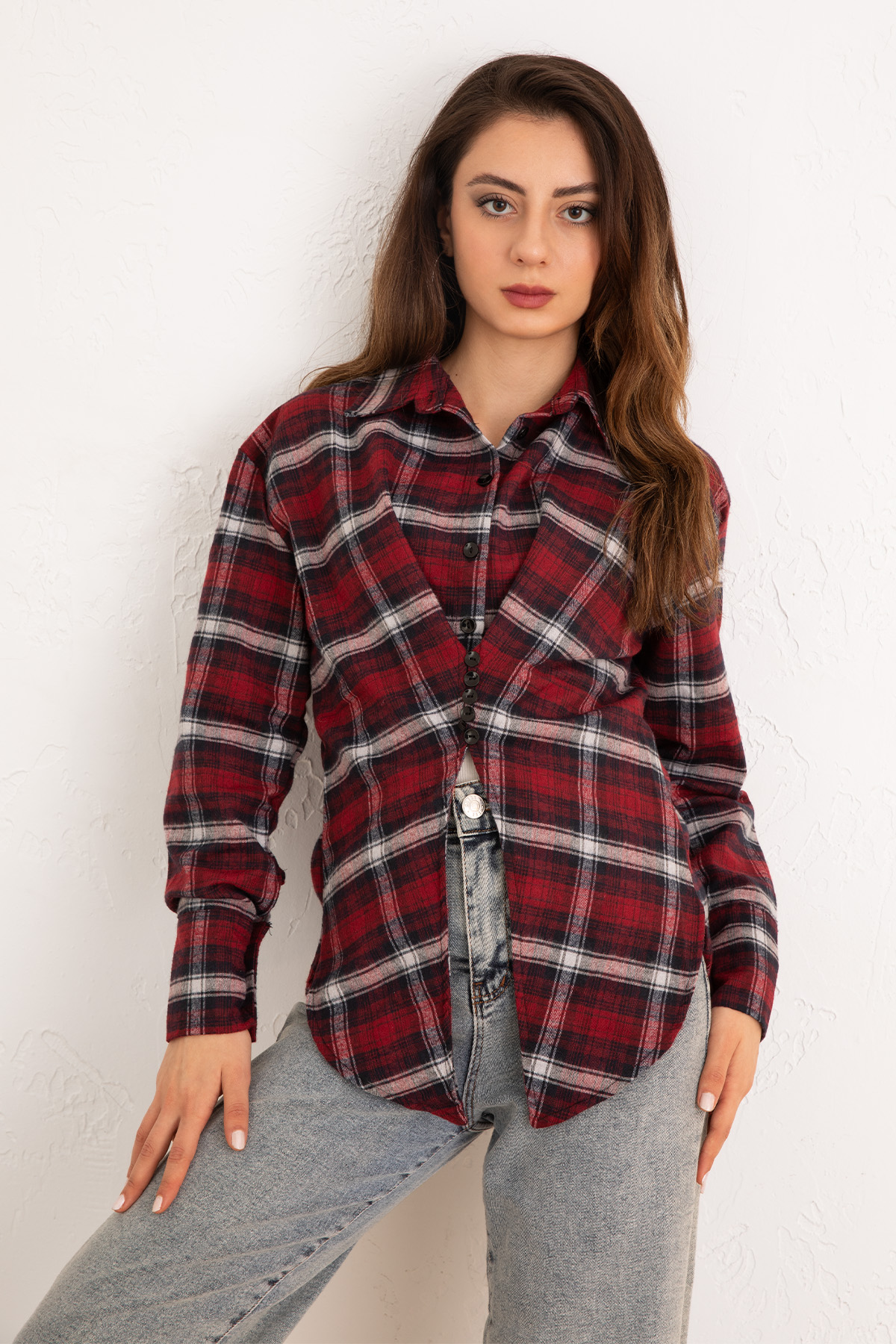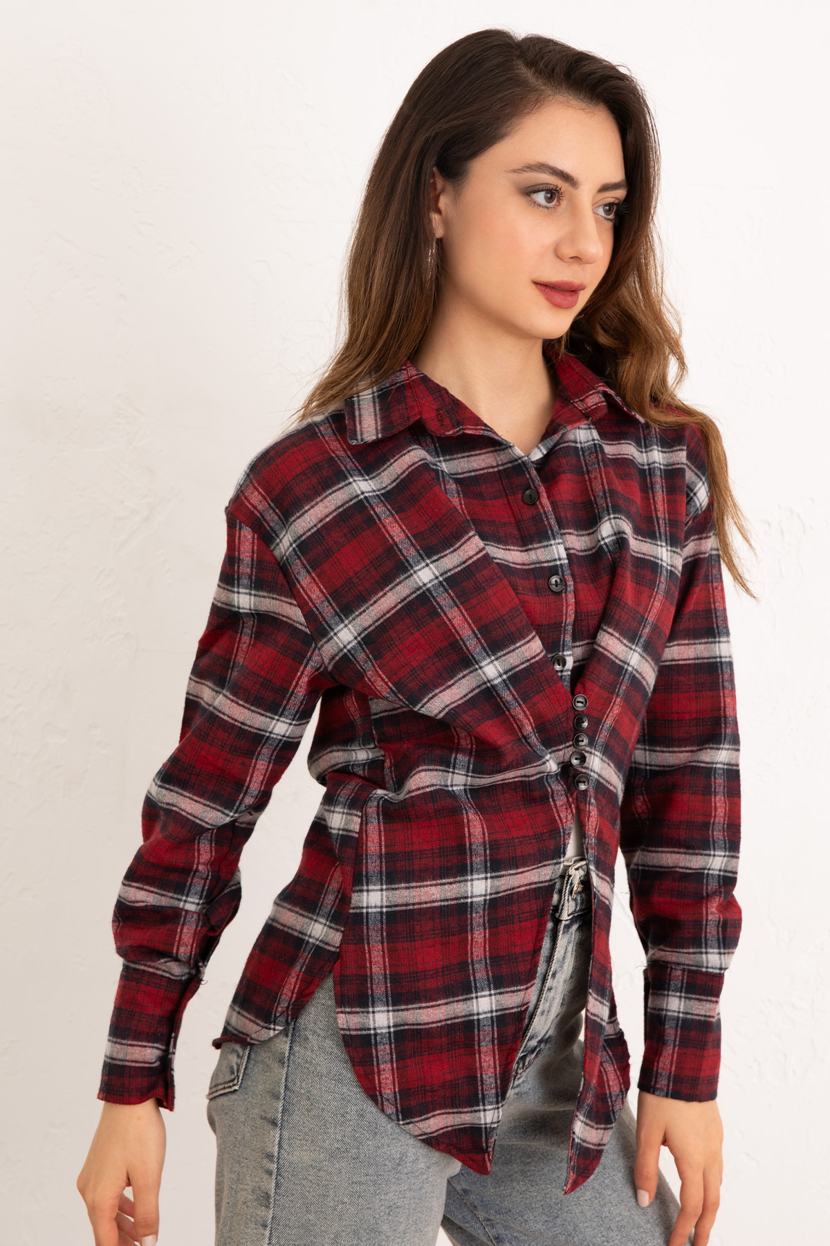 Önü Açık Ekose Gömlek 4139 - BORDO-Bordo