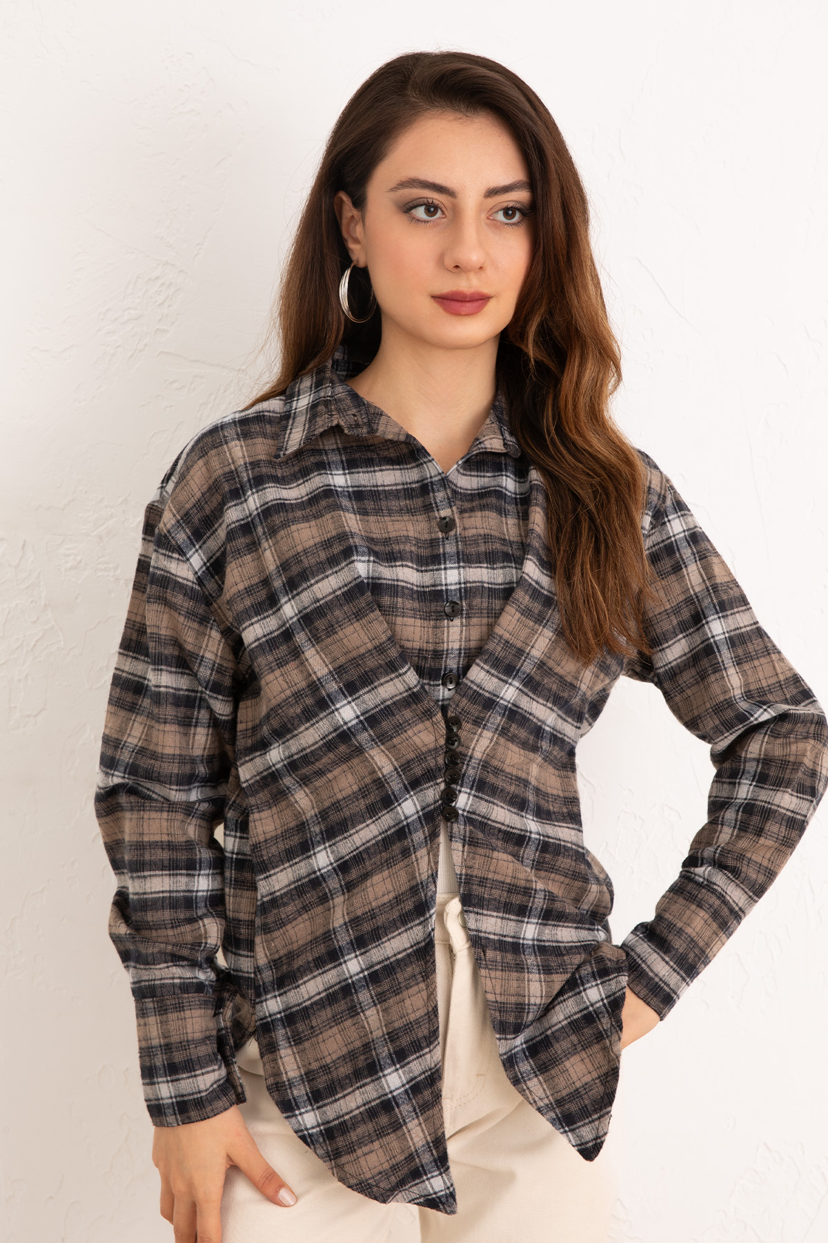 Önü Açık Ekose Gömlek 4139 - VİZON-Vizon