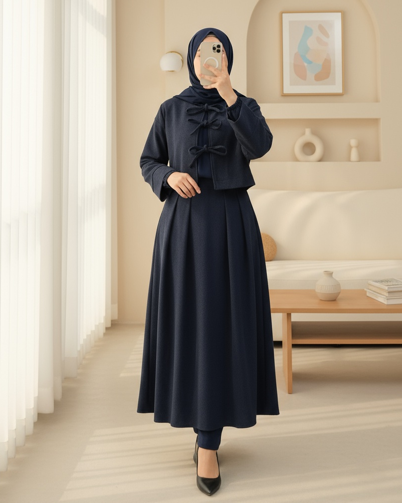 Önü Bağcıklı Etekli Kaşe Takım -Laci-Lacivert