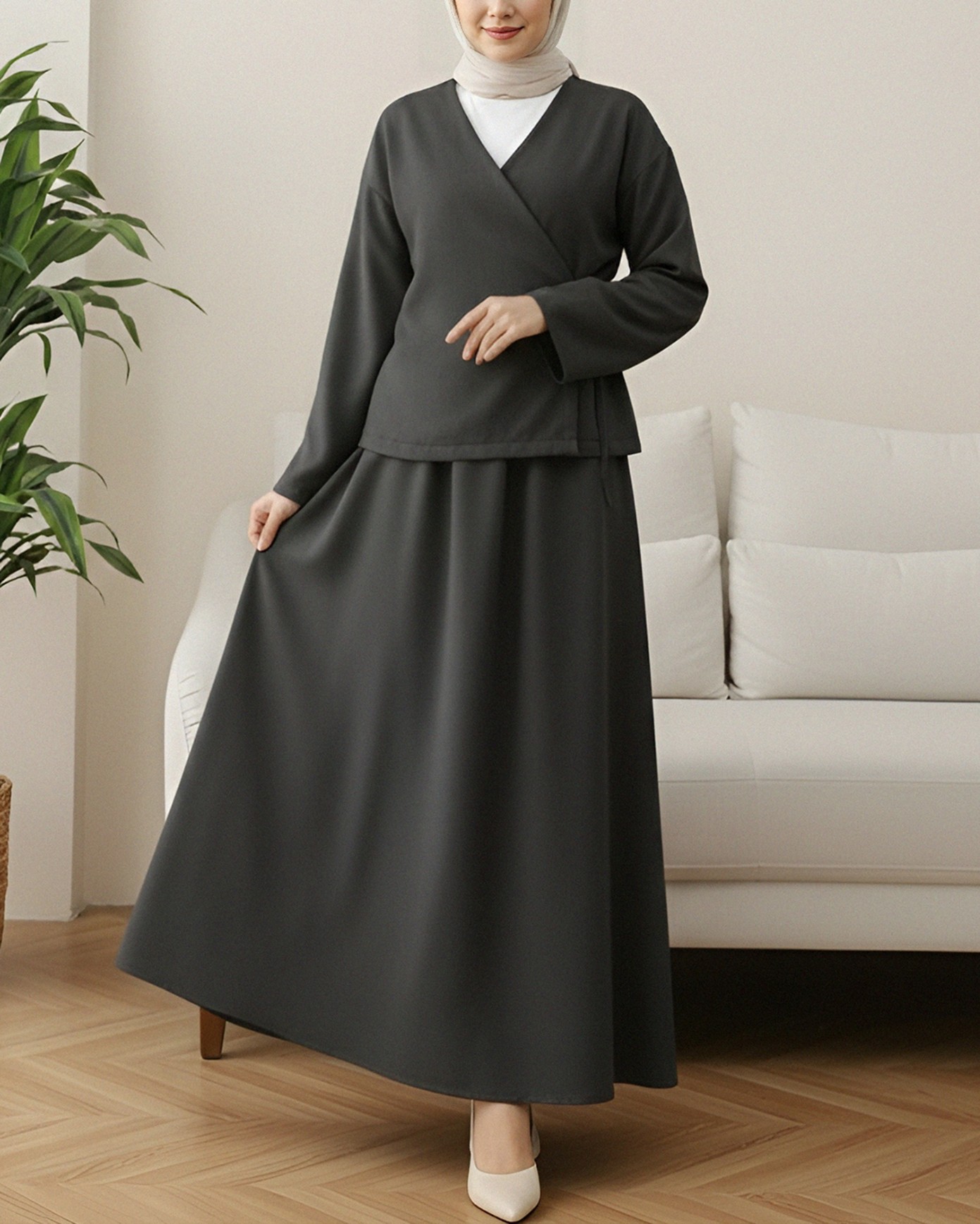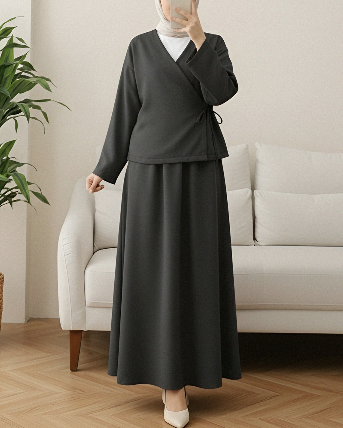 Önü Bağcıklı Etekli Yün Efekt Kışlık -Antrasit-Antrasit