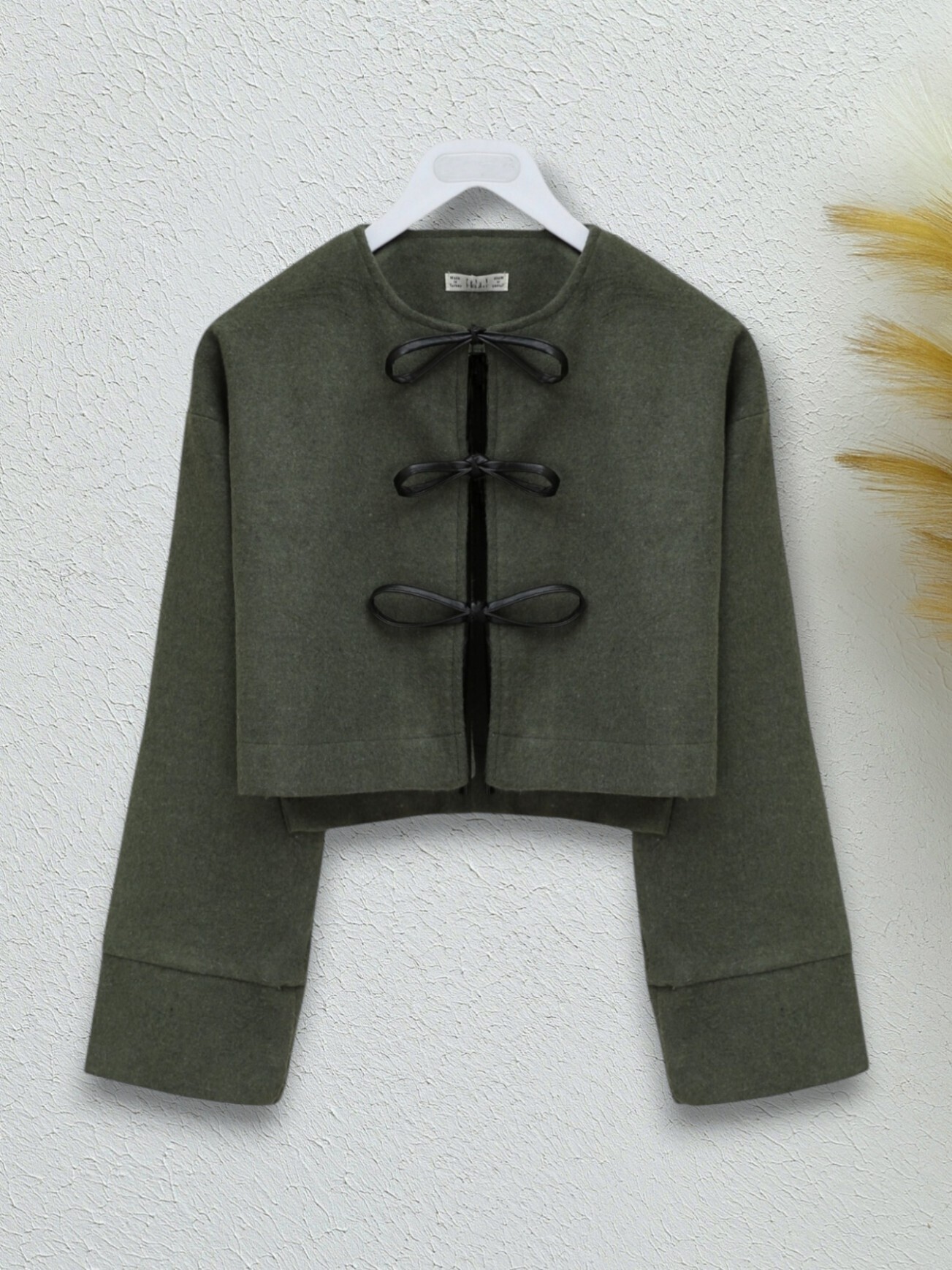 Önü Bağcıklı Kaşe Ceket -Haki-Haki