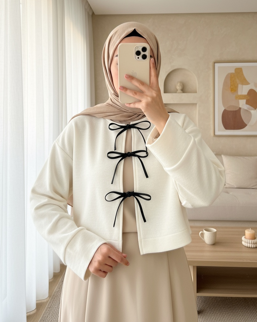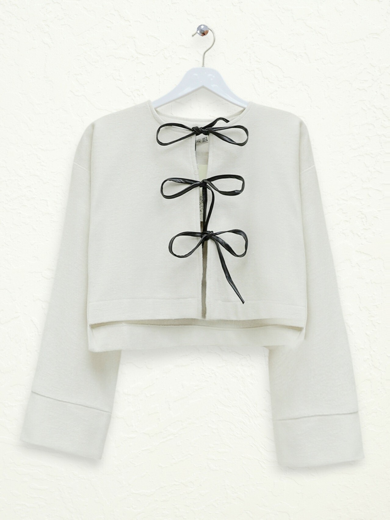 Önü Bağcıklı Kaşe Ceket -Krem-Krem