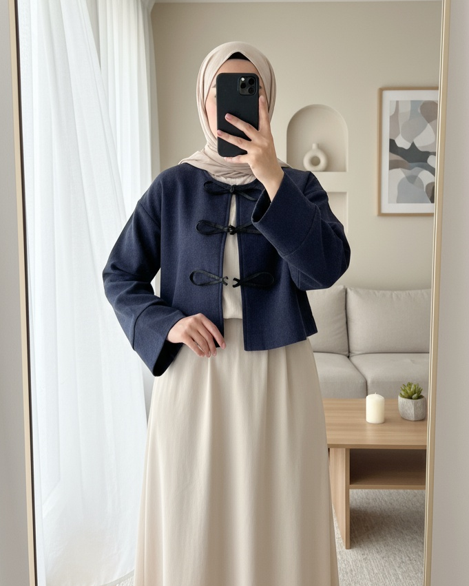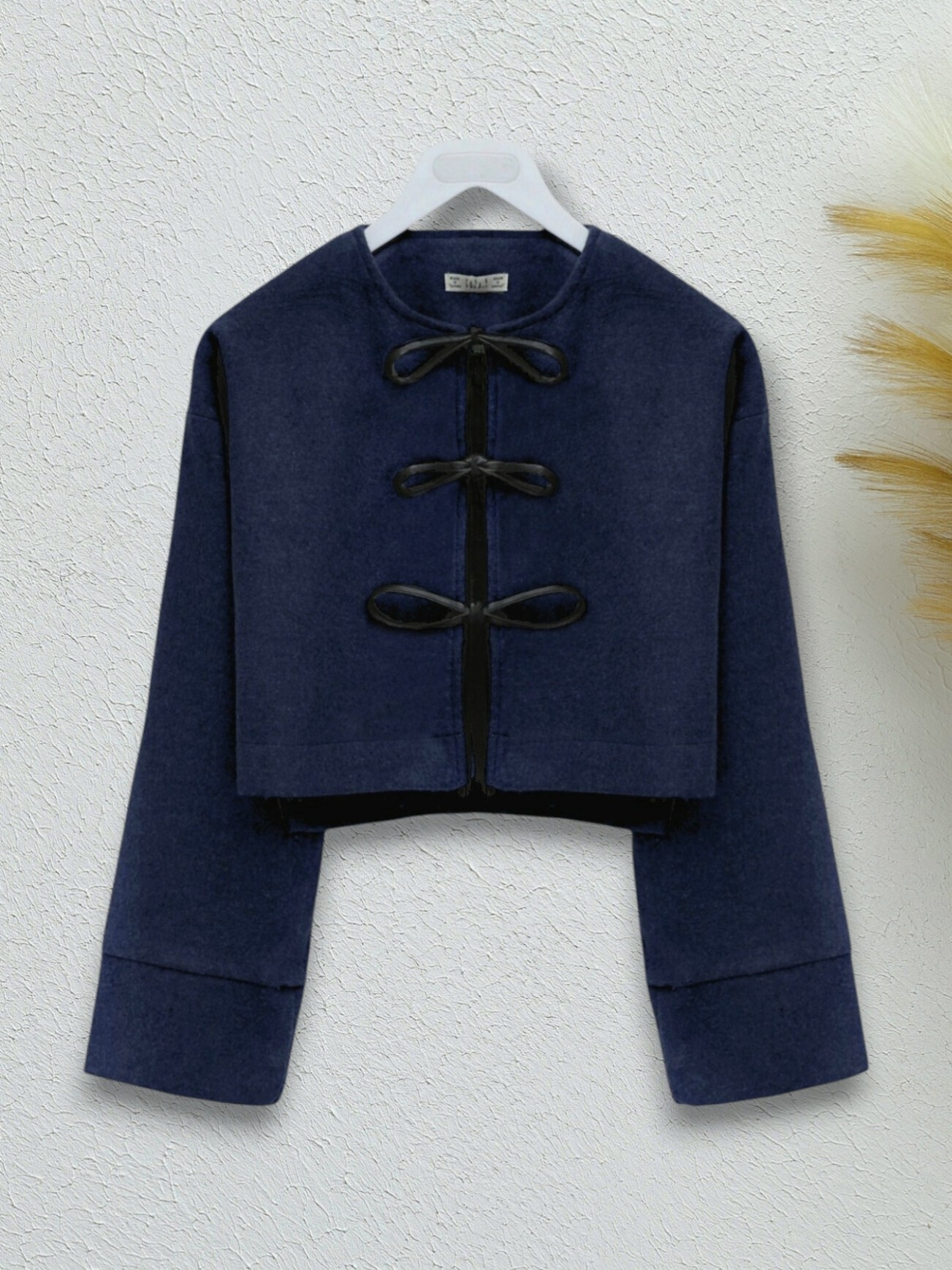 Önü Bağcıklı Kaşe Ceket -Laci-Lacivert